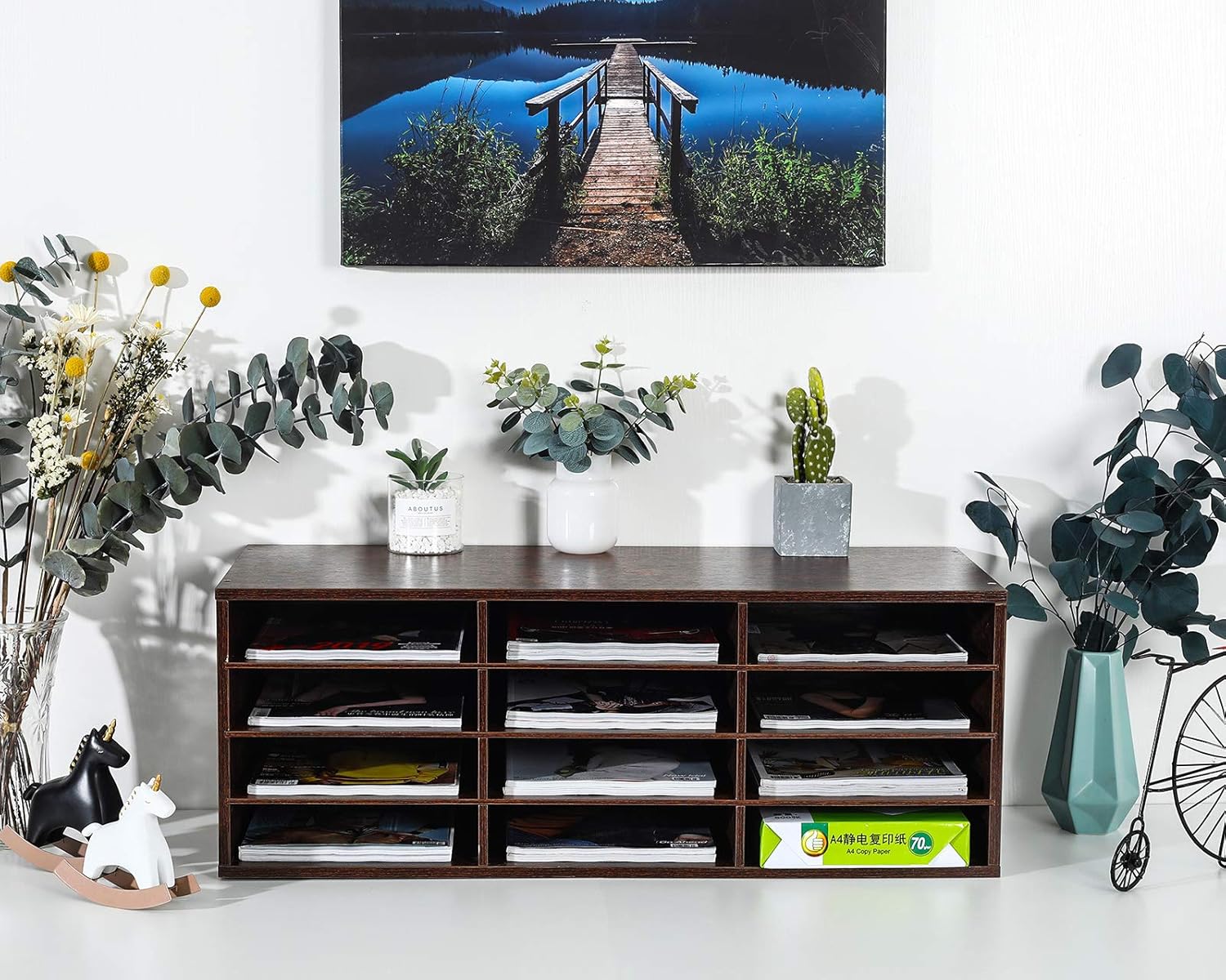 PAG Mail Sorter, Wood Countertop Literature Organizer, Student Mailbox for Classroom, Desktop Bill Paper Organizer for Office Home School, 12 Compartments, Brown