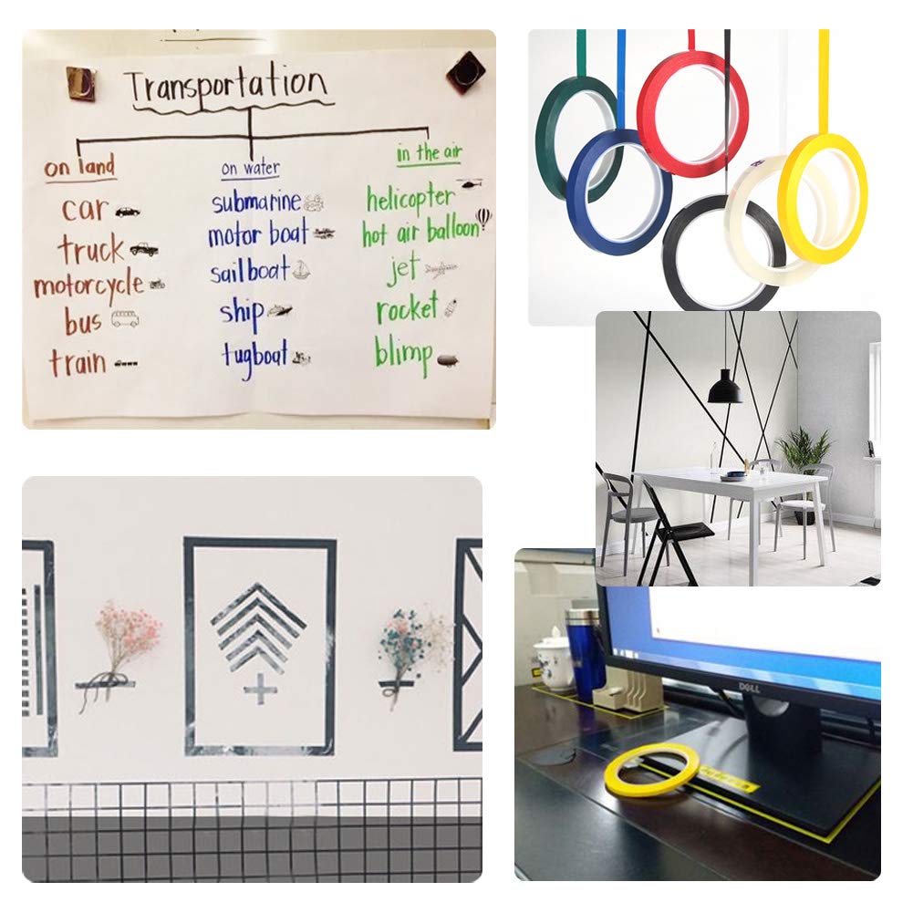- The colored artist tape is easy to making lines on whiteboard, glass, ceramic, plastic, paper, wood, metal, comes off clean without leaving residue.