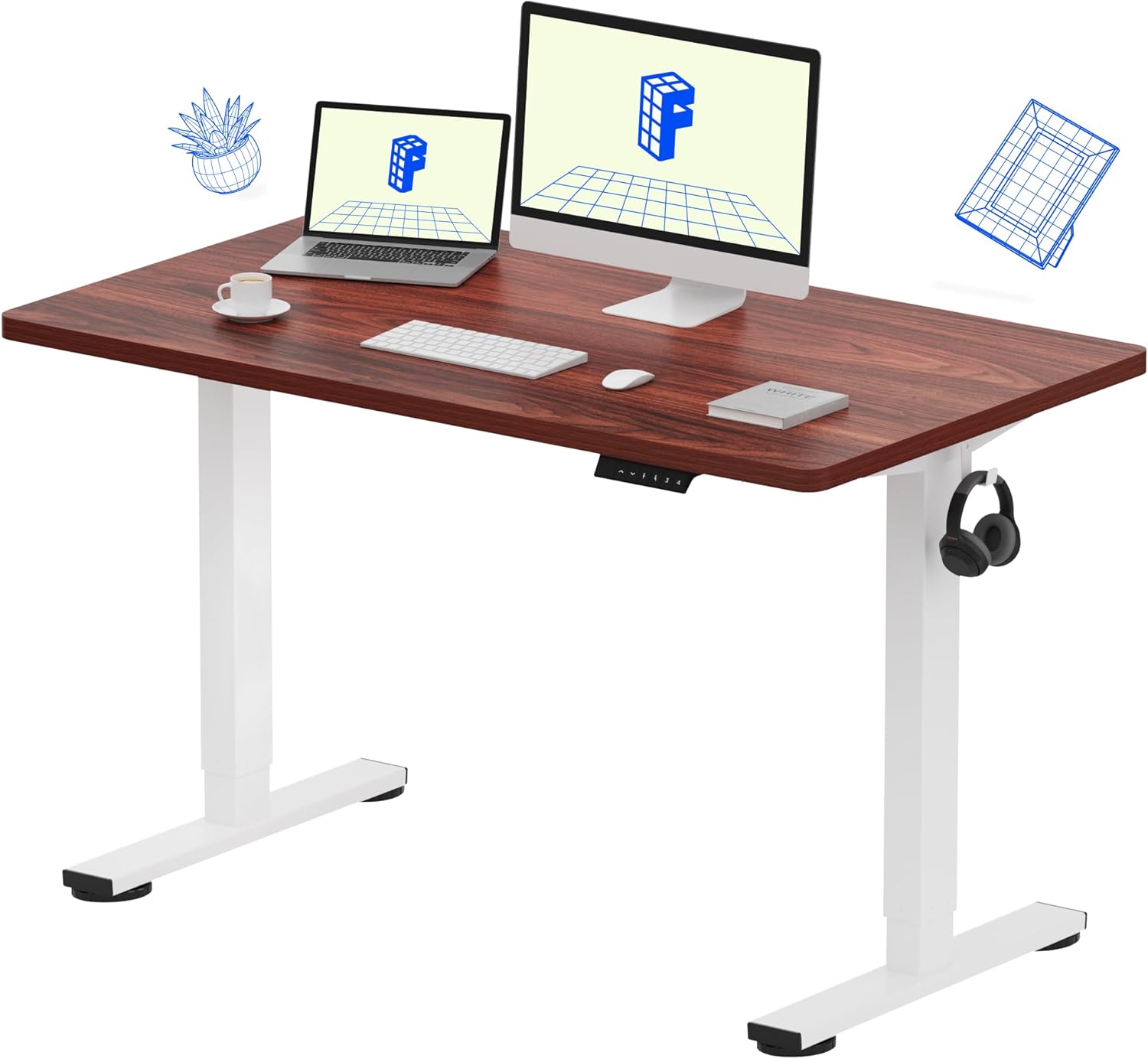 FLEXISPOT EN1 One Piece Standing Desk 48 x 24 Inch Electric Adjustable Height Desk for Home Office and Computer Workstation (White Frame + 48" Mahogany Top, 2 Packages)