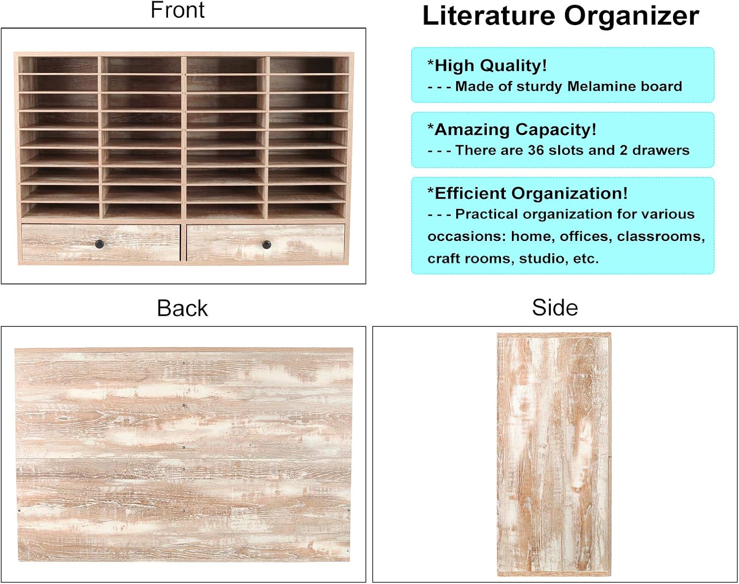 - ▶High Quality. The literature organizer is made of excellent quality Melamine Faced Board, wear-resistant and waterproof, durable and resistant to cracking, suitable for many years and withstand lots of use