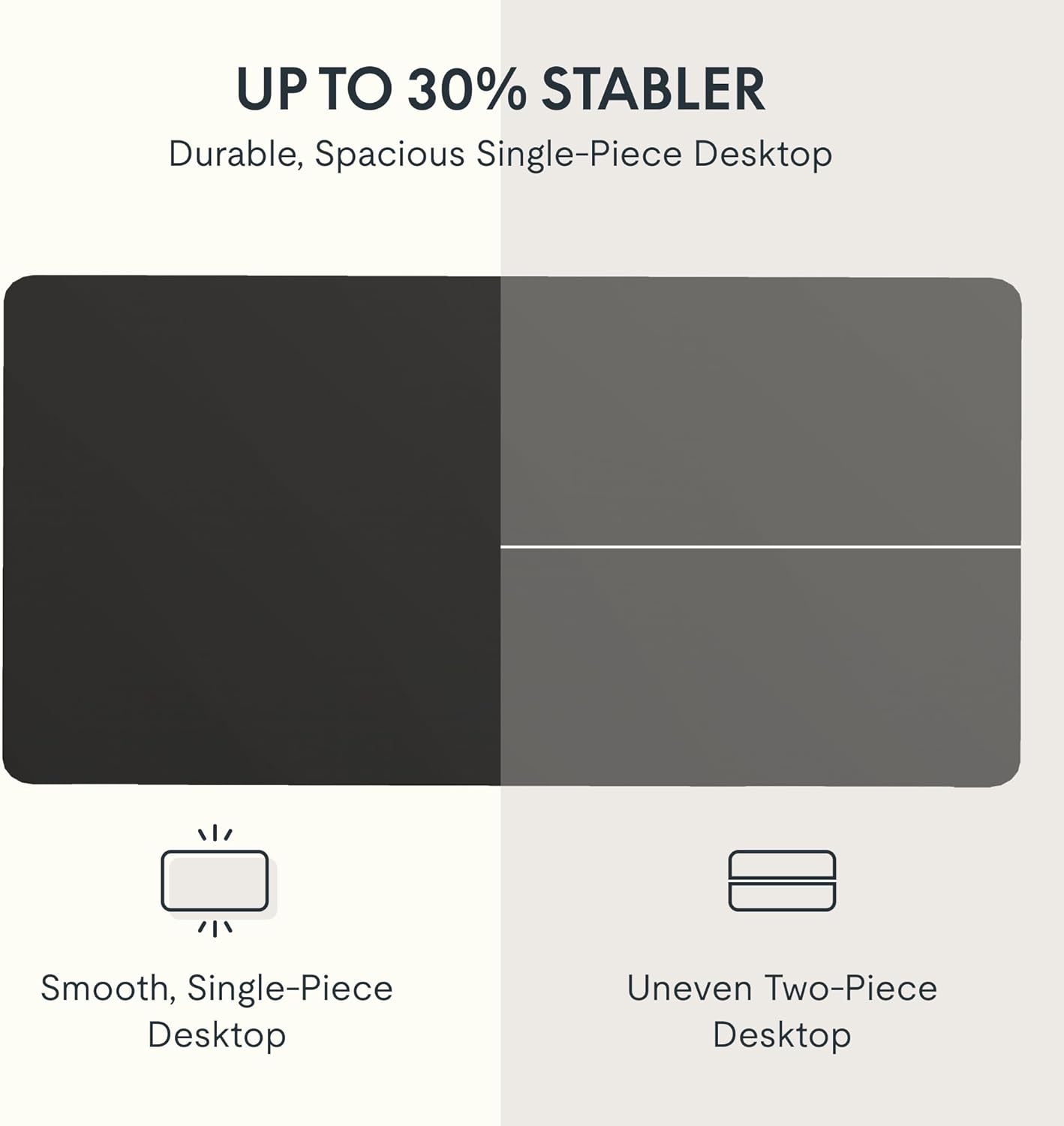 - AMPLE WHOLE-PIECE DESKTOP: With its whole-piece 1β eco-friendly desktop, this standing desk provides plenty of room for your computer setup, documents, and accessories, creating a well-organized and productive work environment. Due to hand measurements, desktop dimensions may vary slightly by 0 to 1β.