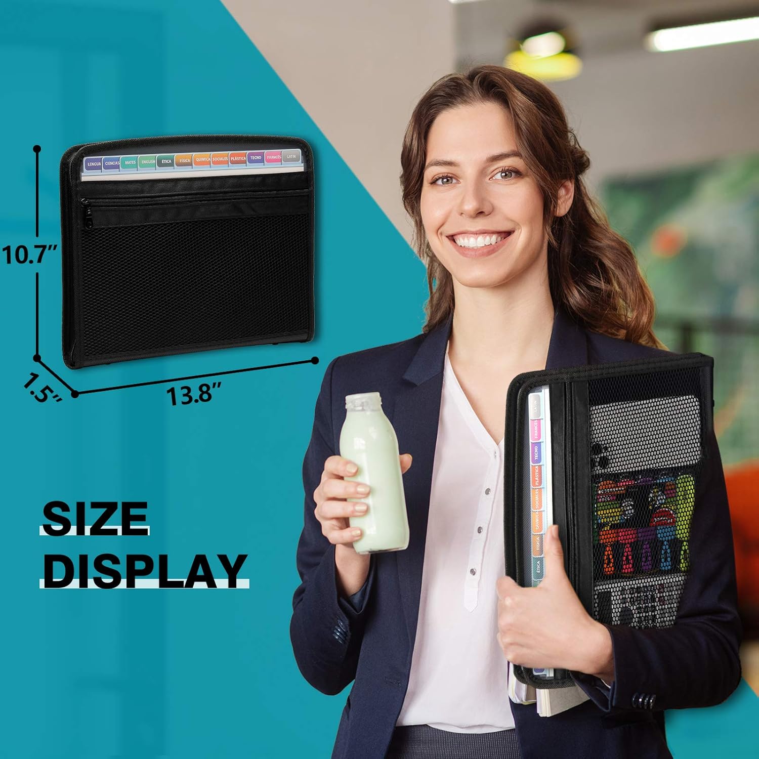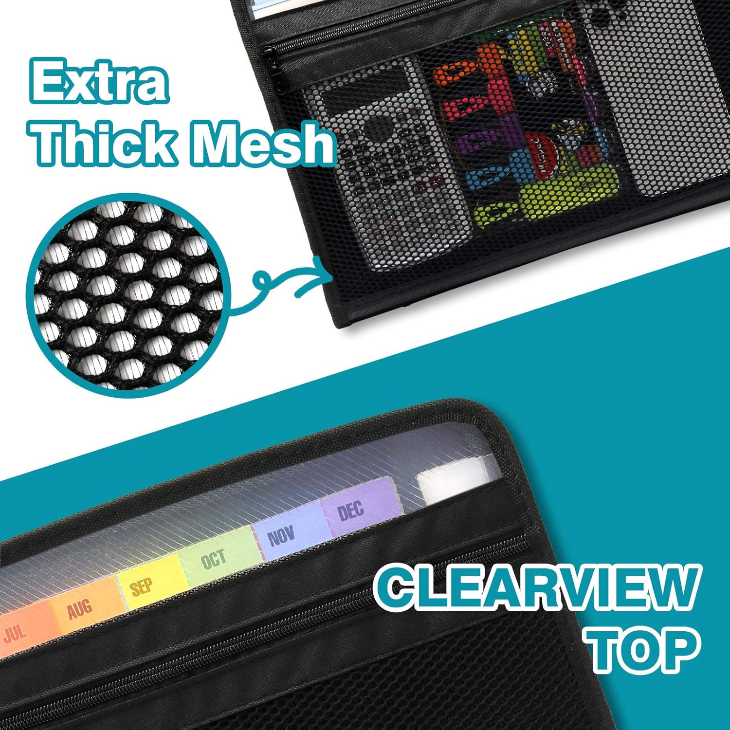 - FRONT ZIPPER MESH POCKET: A roomy mesh pocket with zipper closure added on the front, designed for taking more school office supplies like pens, eraser, calculator, or receipts, invoices papers storage with this expandable file folder organizer