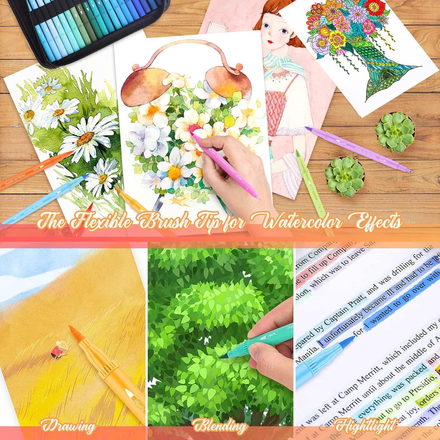 - 72 VIBRANT COLORS : 72 Variety of colors with water-based, vibrant ink. Quality ink blends seamlessly to achieve beautiful coloring effects. Use the brush tip for coloring, shading, and blending, and the fine tip for smaller details. Rich and vivid colors arouse your artistic creativity. Easily layer and mix different colors without worrying about smudges and blotches, it is perfect for Designing Animals, Flowers, Patterns.