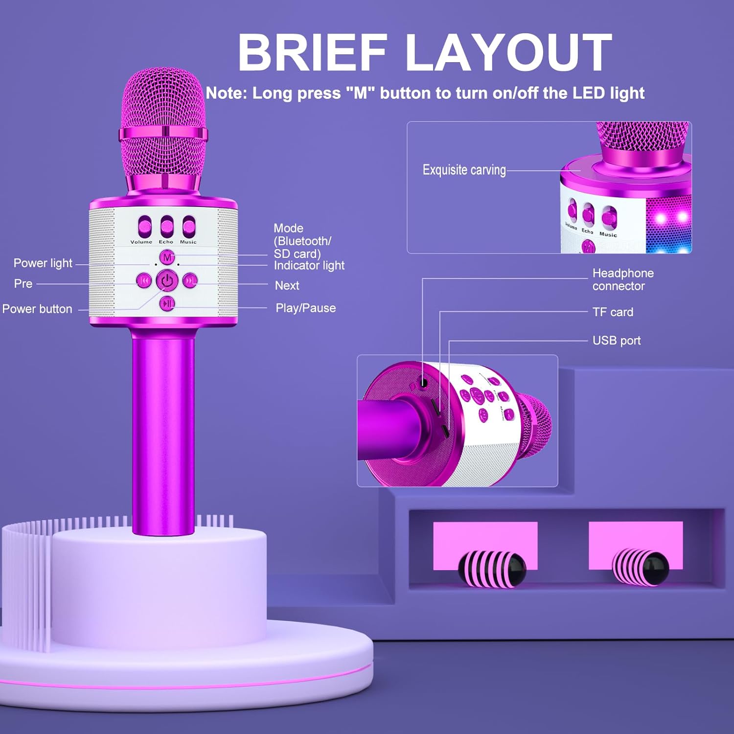 - 【Great Gift Ideas】— BONAOK microphone is a party favor for 4 5 6 7 8 9 10 11 12 years old toddlers, girls, boys, and teenagers. A great gift idea for holidays and activities(Valentine's Day, Easter, Christmas, Thanksgiving, New Year, etc).What you get(Q78 microphone,charging cable,giftable box, NO BLACK CASE for this color)