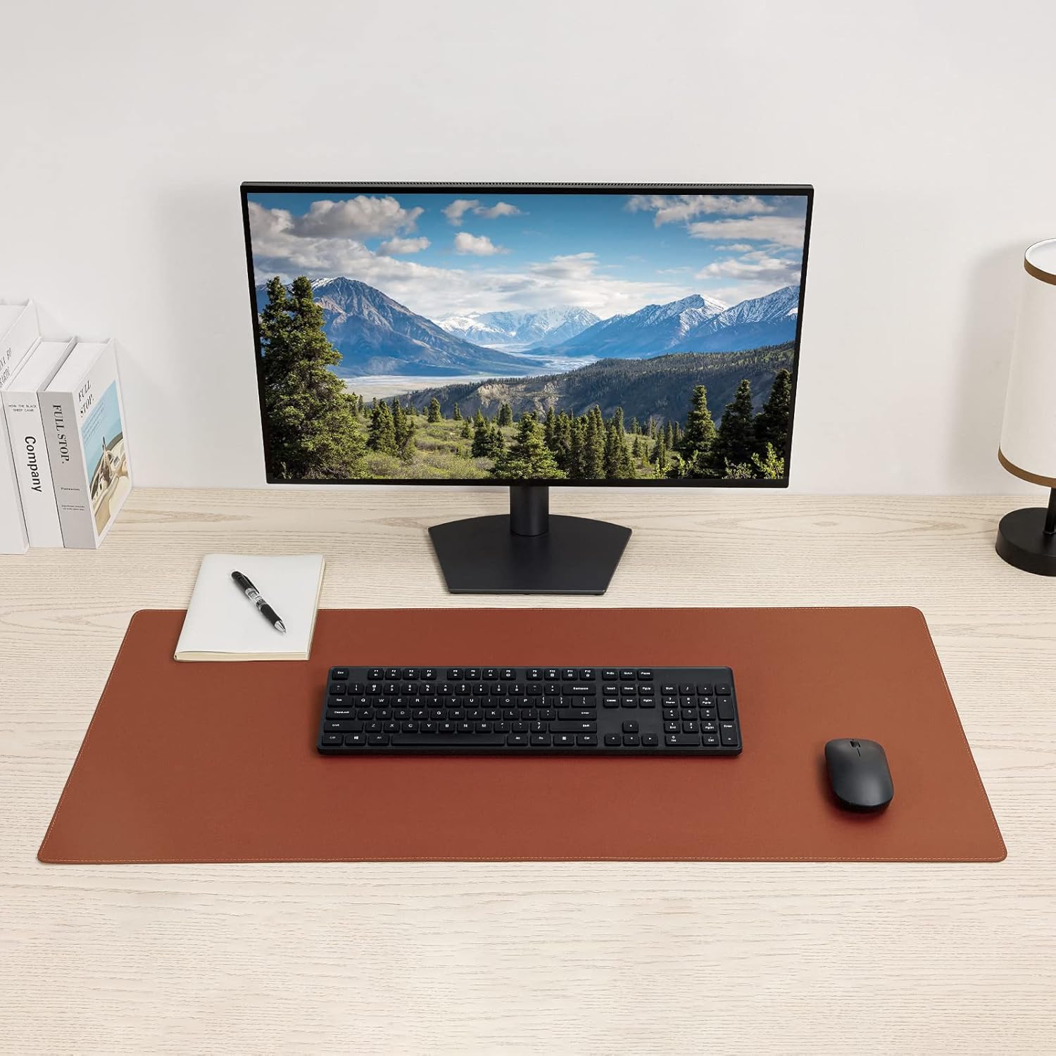 Desk Pad Blotter,Wolaile 36x17 in Large PU Leather Mouse Pad,Waterproof Non-Slip Writing Desktop Protector Mat,Office Desk Accessory,Brown