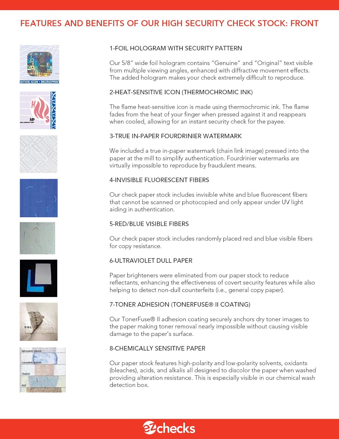 - This high security check paper contains 20 security features, including a foil hologram to protect your business from check fraud.