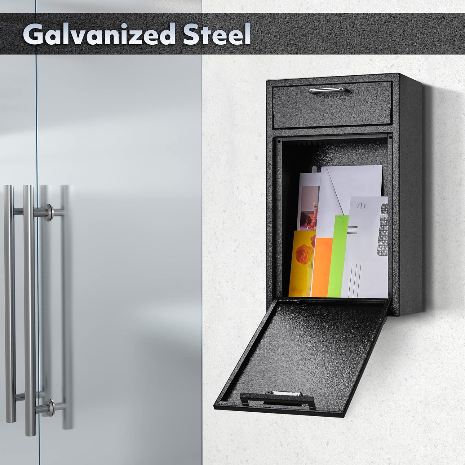- WALL MOUNTABLE LOCKBOX: This cash drop box with lock is designed to be installed on walls of offices, warehouses, schools, and house. Simply use the hardware provided to mount this modern locking mailbox, and you can use your metal wall mount mailbox immediately.