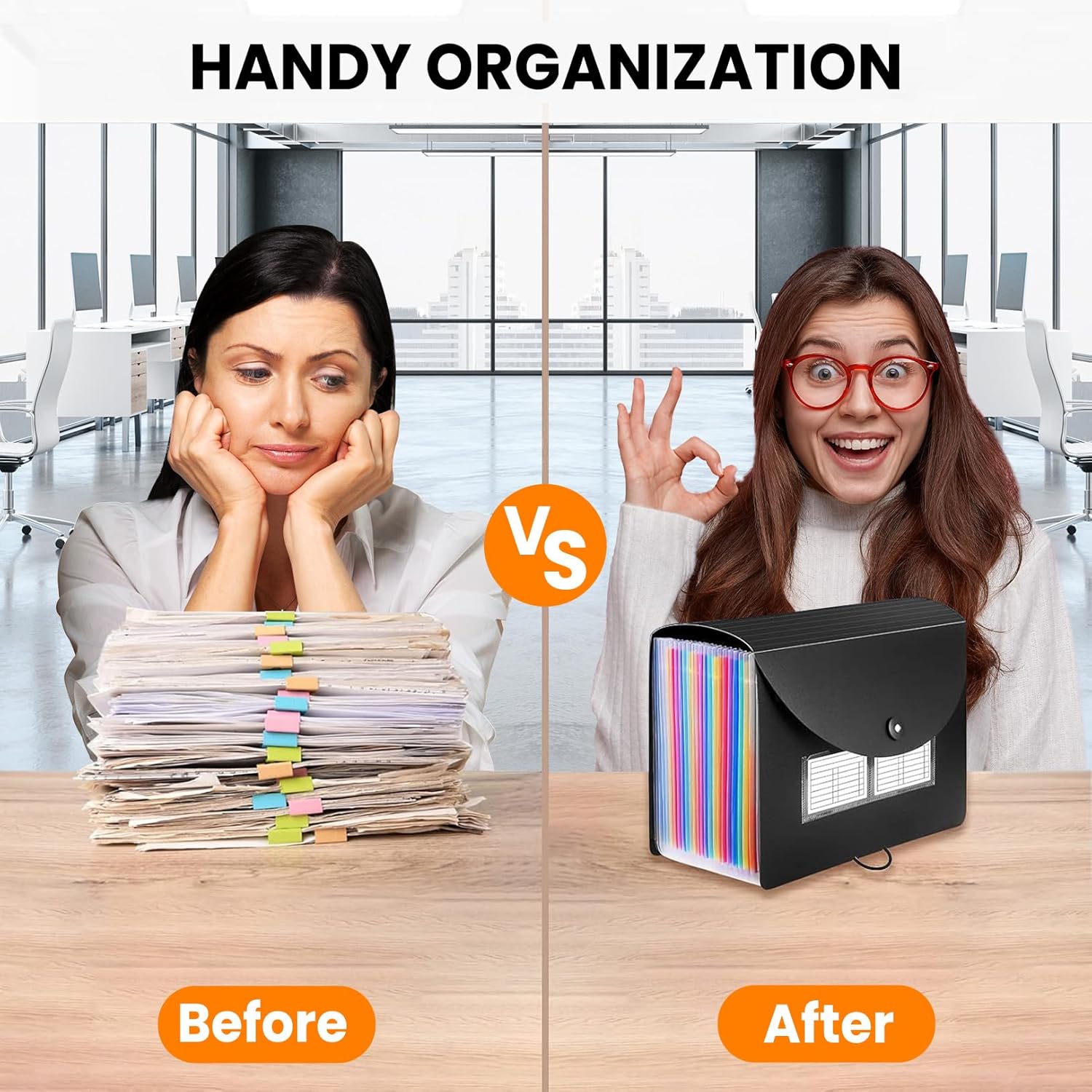 - Handy organization & Easy lookup: Expandable file folder has 24 pockets designed for keeping our paperwork organized. Accurately classified storage in the specific color slot and labeled with tabs, so it is easier to find the papers what is needed.