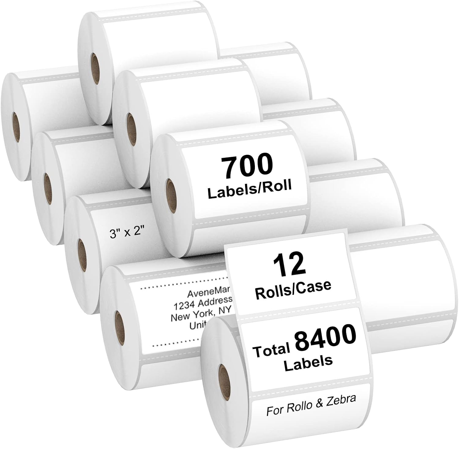 AveneMark 12 Rolls 3” X 2” Direct Thermal Labels for Barcodes, Address Labels Perforated & Compatible with Rollo & Zebra Desktop Label Printers (700/Roll)
