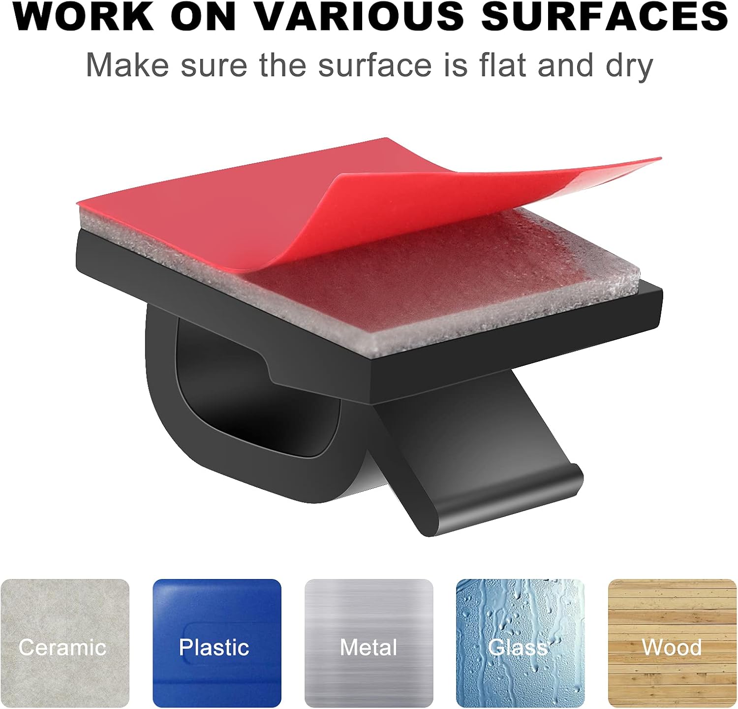 - 【Note before Use】 Make sure to clean the mounting surface with alcohol pads before you use the wire organizer clips, stick it on and press firmly for 30 seconds, and use them after 24 hours for maximum adhesion.