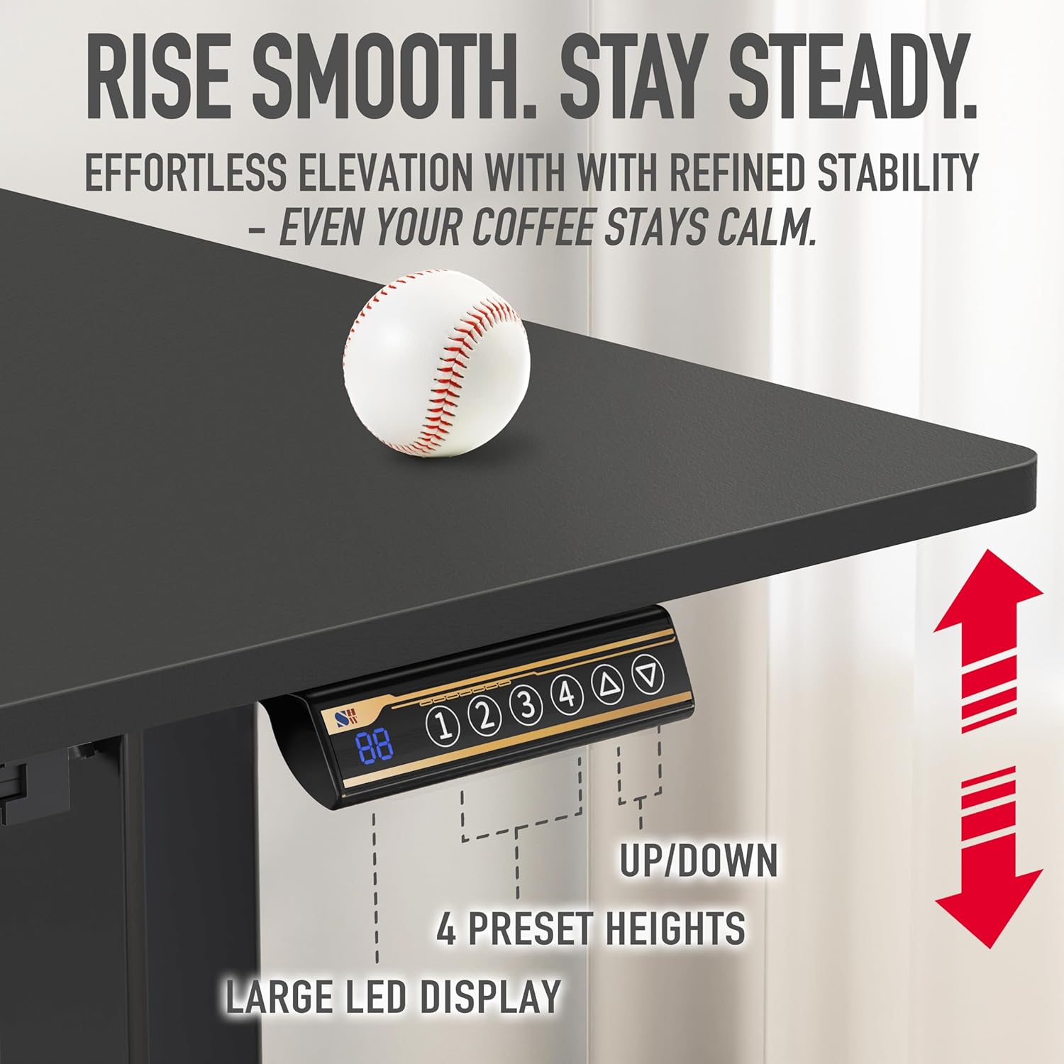 - Smooth Electric Height Adjustment: Transition seamlessly between sitting and standing with the touch of a button. The quiet motorized lift system ensures stable and ergonomic positioning throughout the workday.