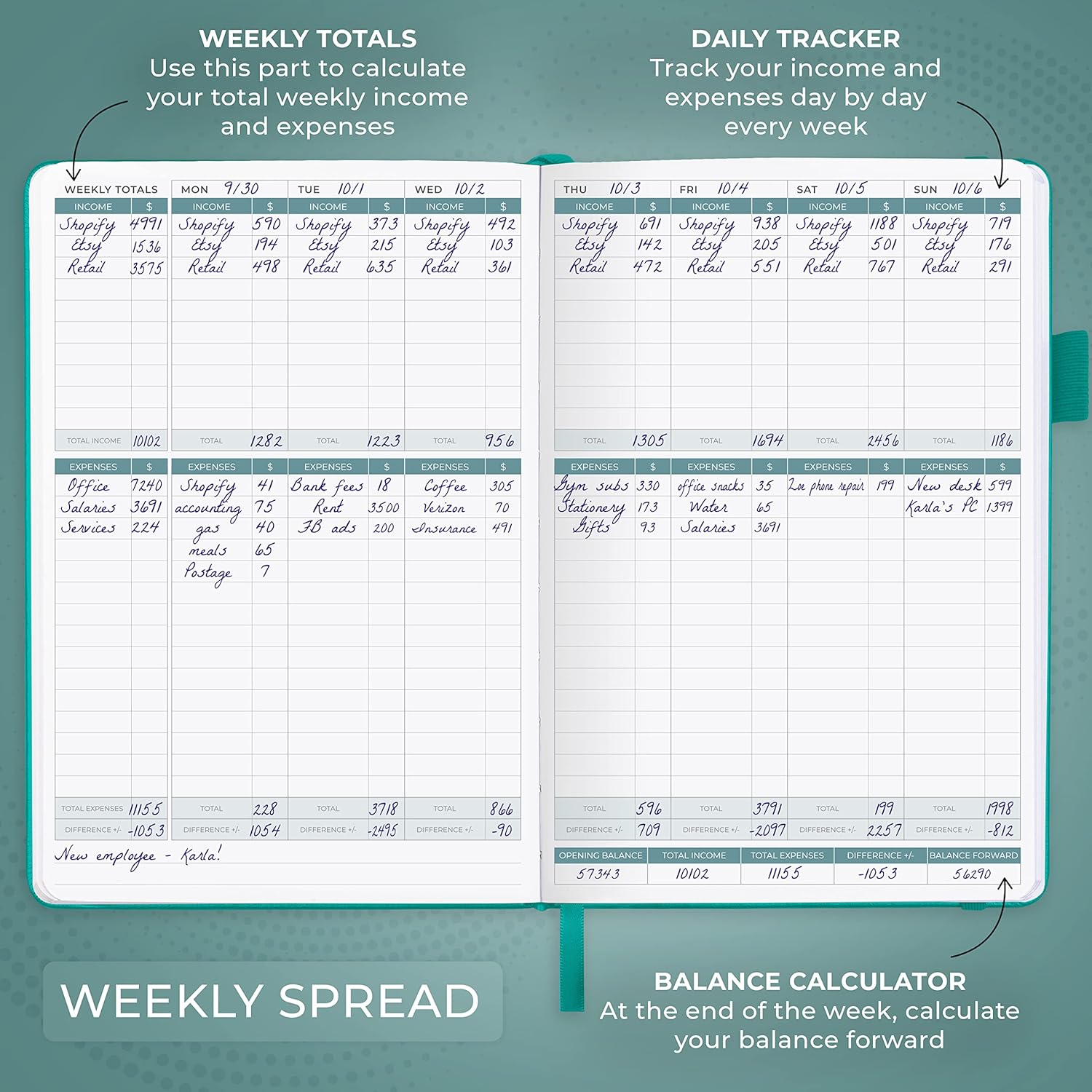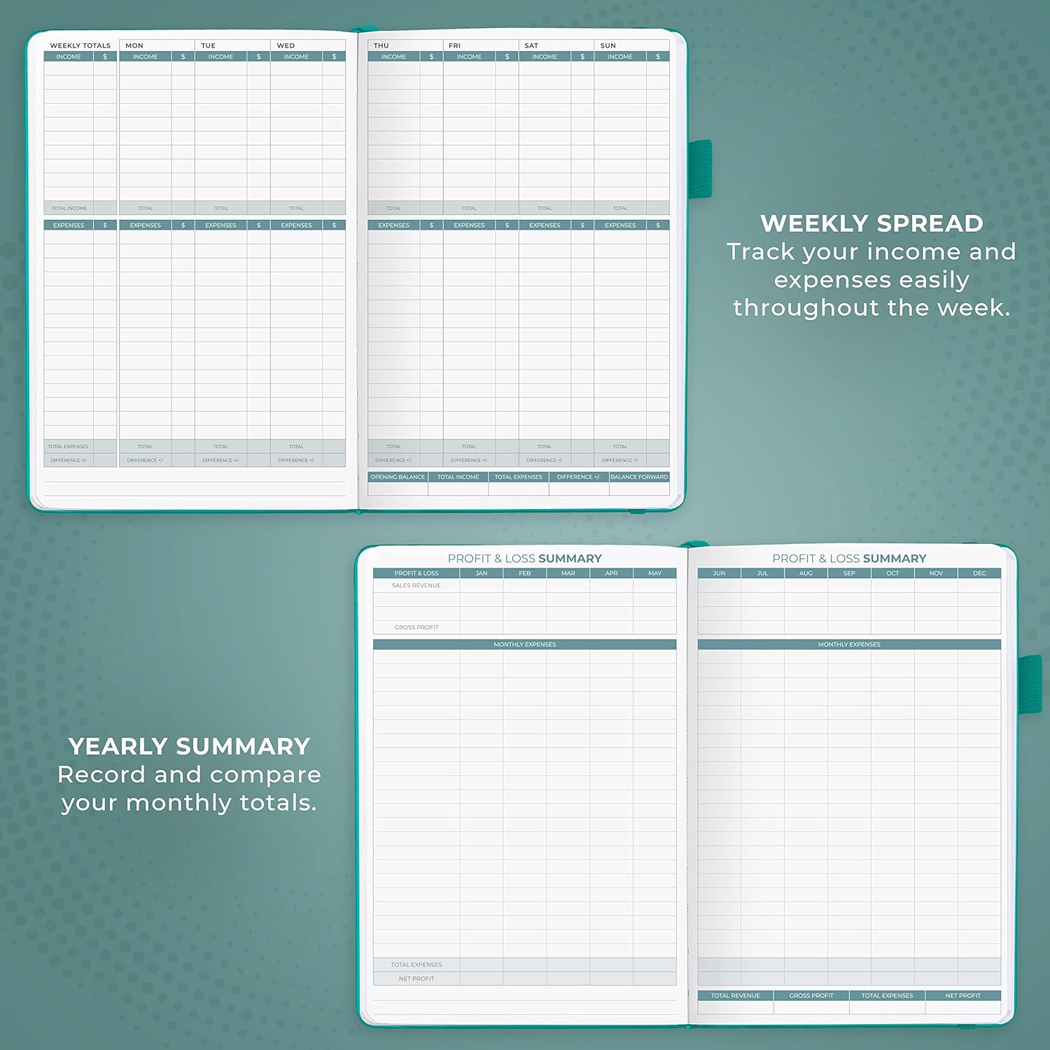 - SWITCH TO EFFICIENT & STRESS-FREE ACCOUNTING: This accounting book is undated and lasts a whole year and has 113 pages, including 53 weekly views, an annual summary, empty note pages, and, at the back, a spacious pocket for receipts.