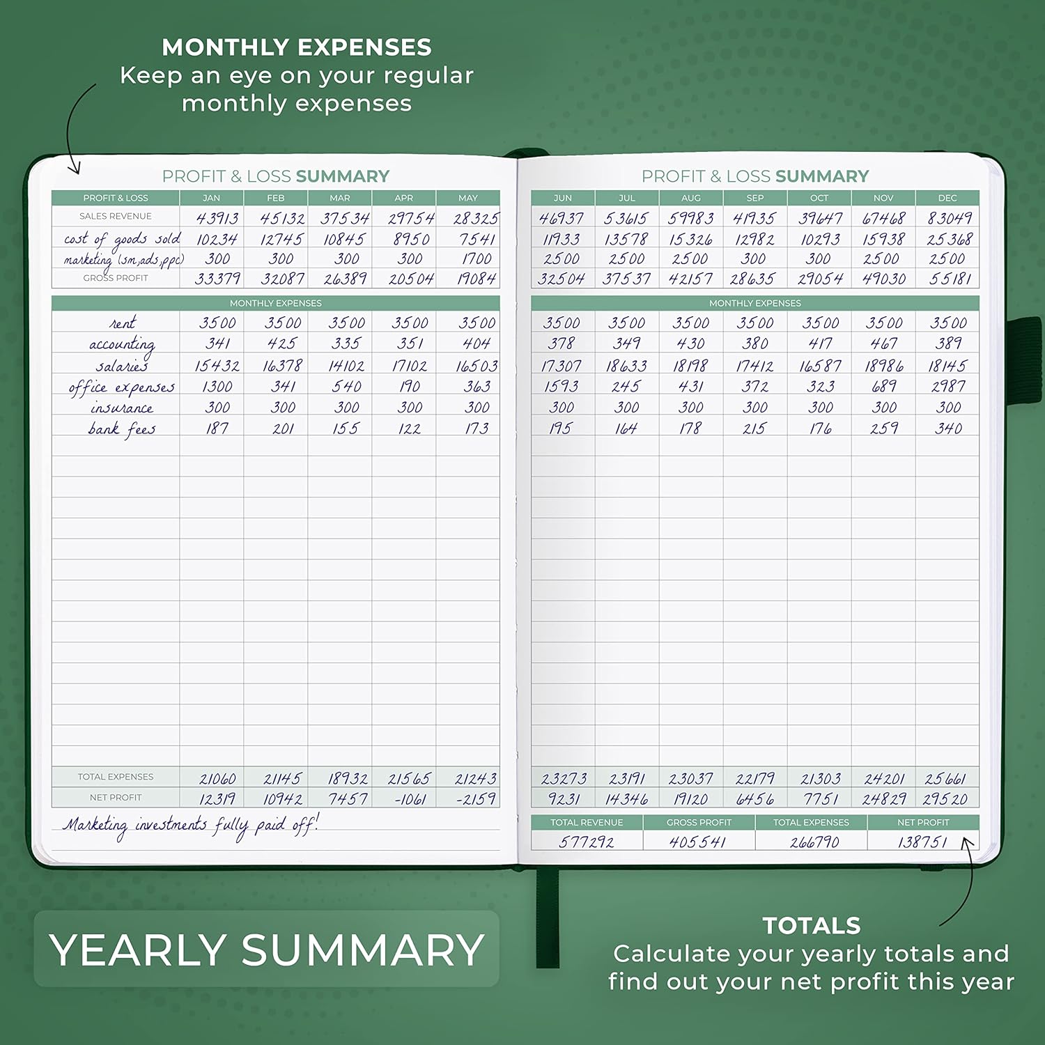 - COMPACT A5 FORMAT & DURABLE DESIGN: This bookkeeping record book comes in A5 format (5.8 by 8.3 inches) and has an eco-leather hardcover, 120gsm no-bleed paper, elastic, pen loop, bookmark, pocket for notes, and a user guide.