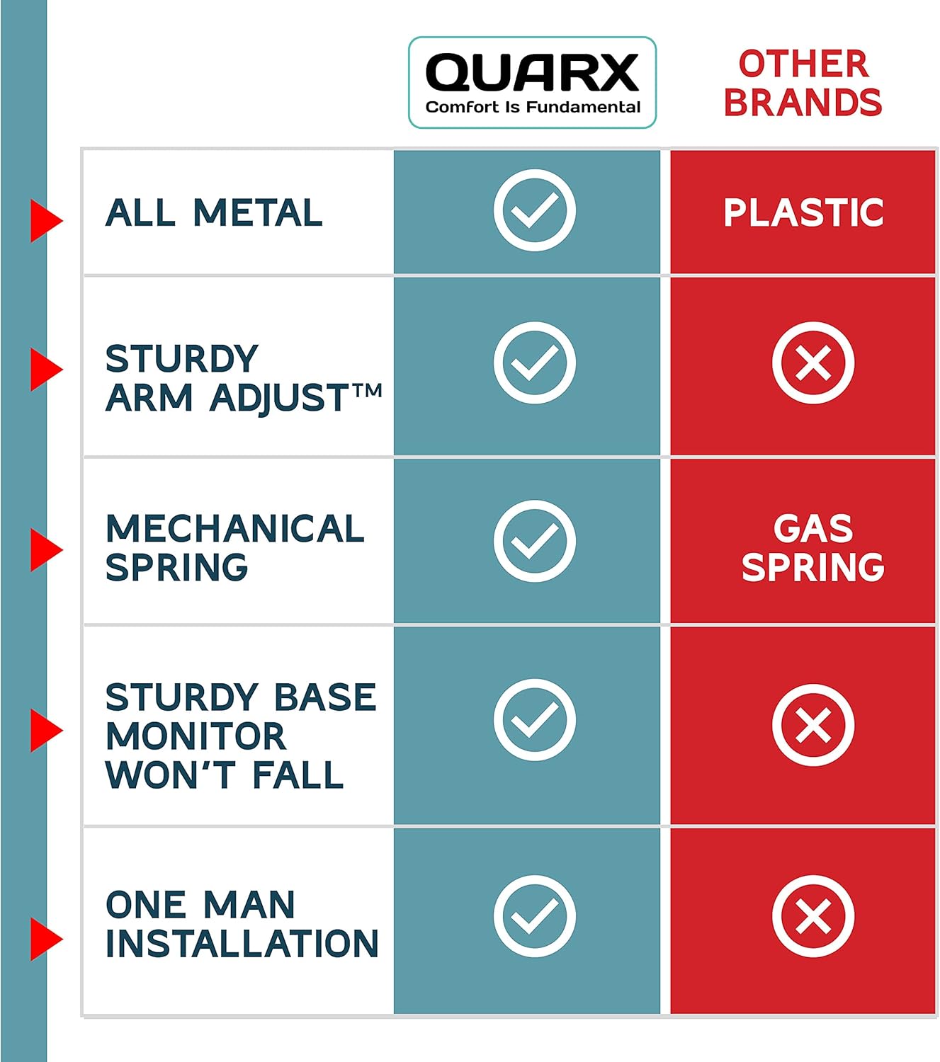 - QUARX HIGH-QUALITY: The QUARX team has dedicated endless research time to perfect our FLYTE monitor arm dual and present you with a top of the line premium grade all dual arm monitor mount, with many one of a kind features and functions. If you do have any issues with our FLYTE dual monitor arms please reach out to one of our dedicated customer service assistants and we will do our best to resolve your issue.