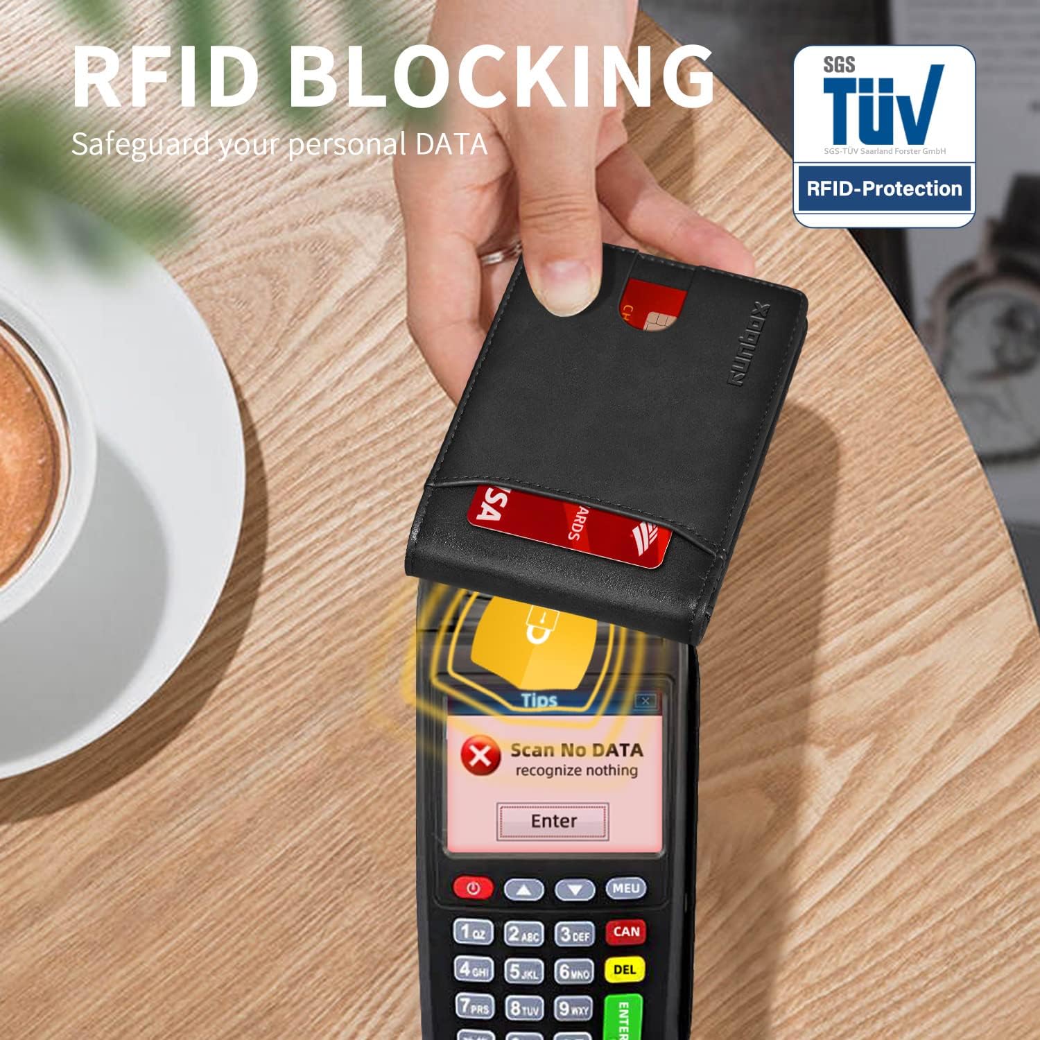 - RFID Blocking - This wallet for men are designed by German designer, made of genuine leather material, durable, wear- resistant and scratch-resistant. Our wallets block the 13.56 MHz band and protect against data theft by RFID scanners