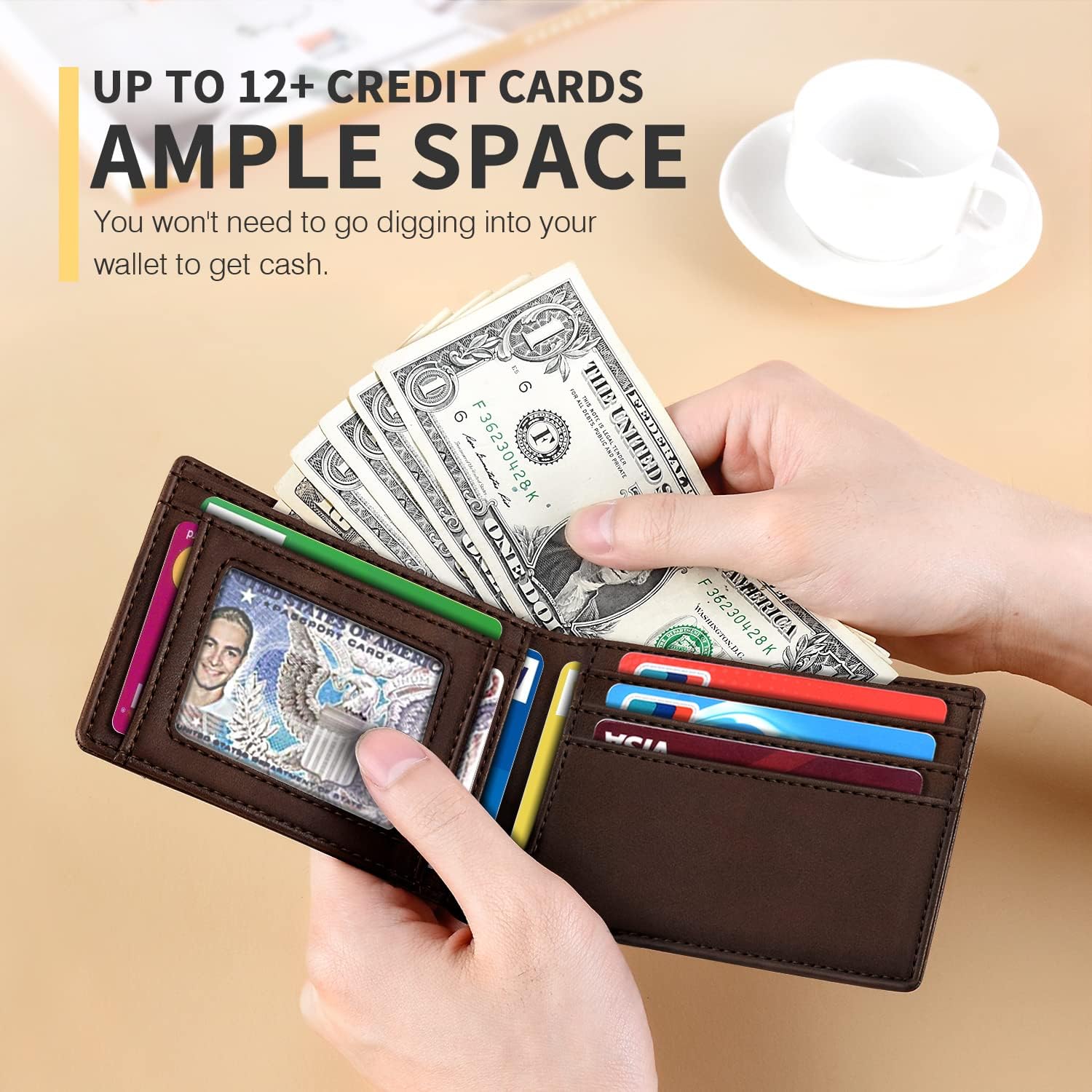 RUNBOX Novelty Wallet for Men Slim 11 Credit Card Holder Slots Leather RFID Blocking Small Thin Men's Wallet Bifold Minimalist Front Pocket Large Capacity Gift Box