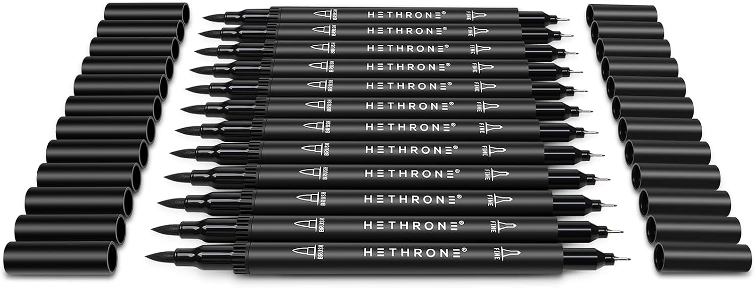 Hethrone Black Markers for Drawing - Brush Pens with Felt Tips for Artists - Calligraphy Pens, 12 Pack