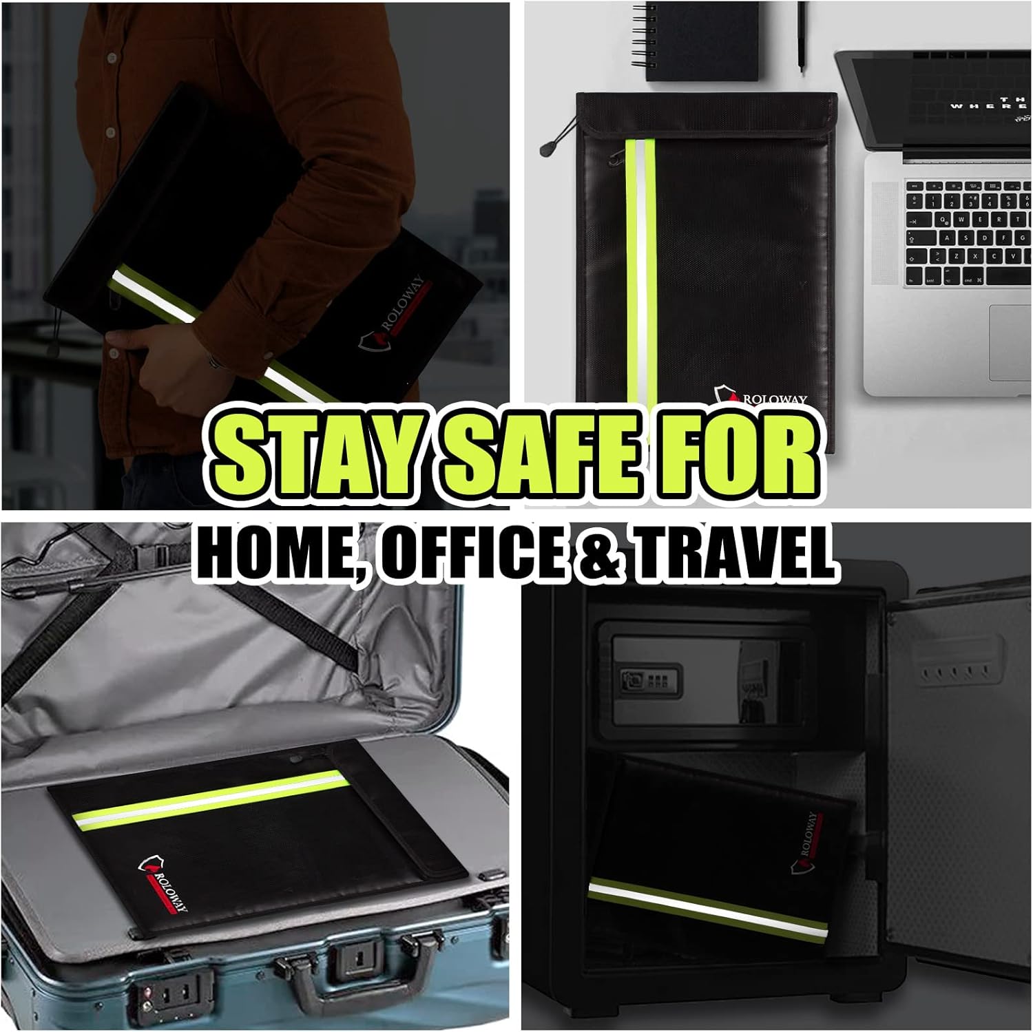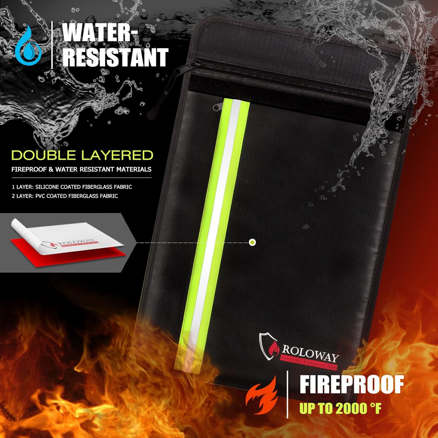 ROLOWAY Fireproof Envelope for Cash, Legal Documents Safe (15 x 11 inch) with 2 Pockets & Waterproof Zipper, Black