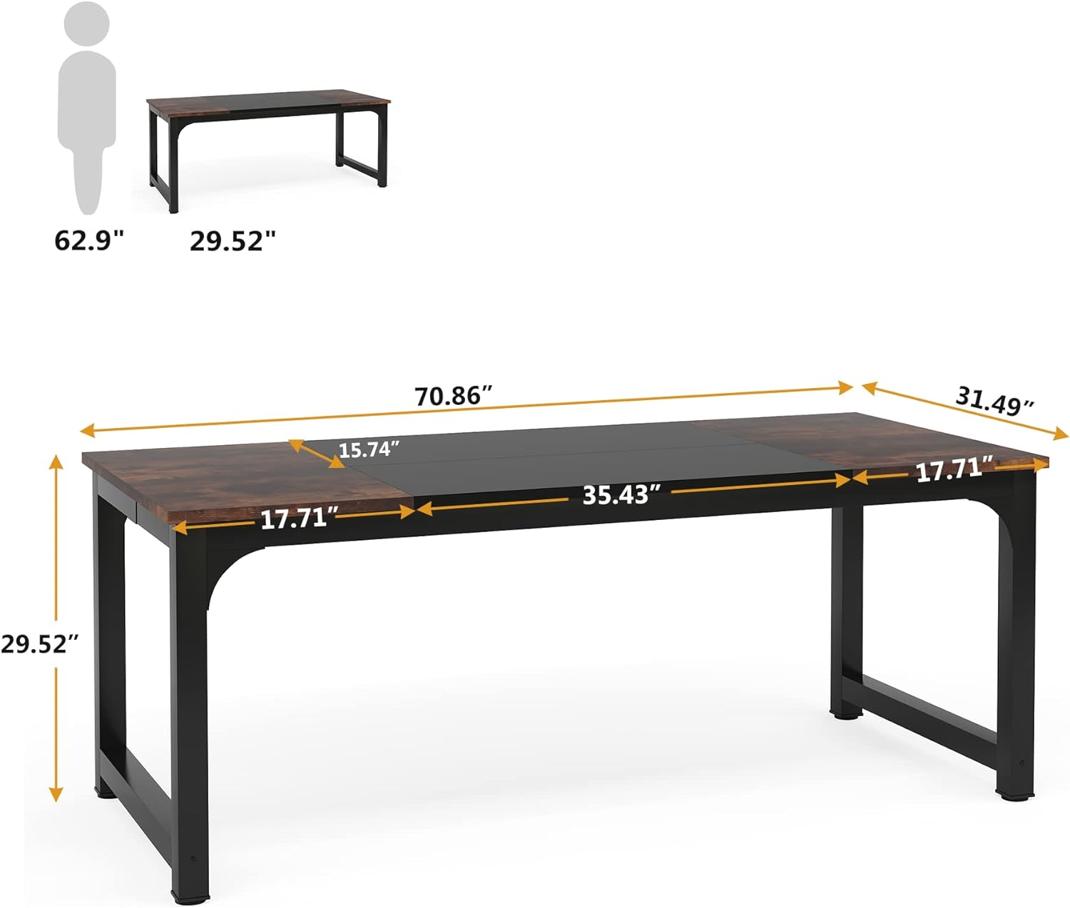 Tribesigns 70.8”Executive Desk, Large Office Computer Desk with Thicken Frame, Modern Simple Workstation Business Furniture for Home Office, Rustic Brown/Black