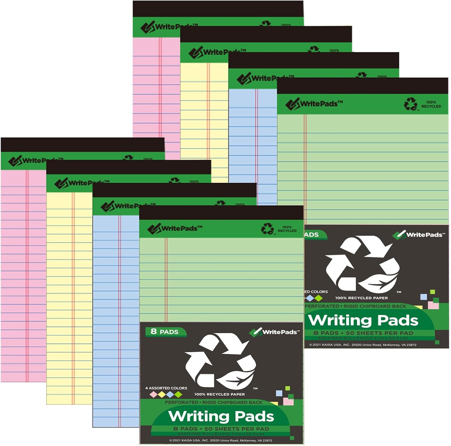 KAISA Colored Legal Pads - 5"x8" Narrow Ruled, 50 Sheets/Pad (8 Pads), Recycled Paper Writing Pad with Sturdy Back, Small Size for Easy Organization and Portability, KSU-6887