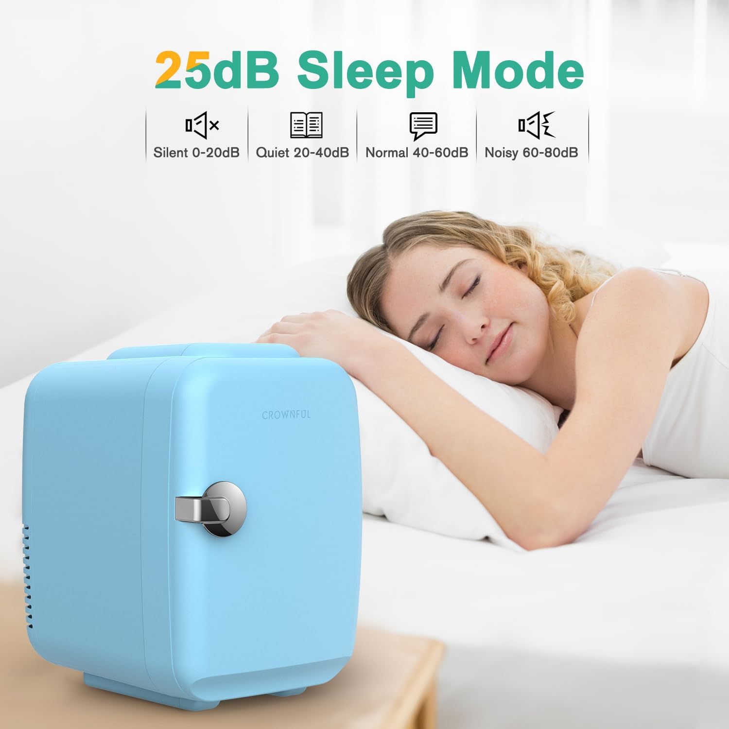 CROWNFUL Mini Fridge, 4 Liter/6 Can Portable Cooler and Warmer Personal Fridge for Skin Care, Cosmetics, Food,Great for Bedroom, Office, Car, Dorm, ETL Listed (Blue)
