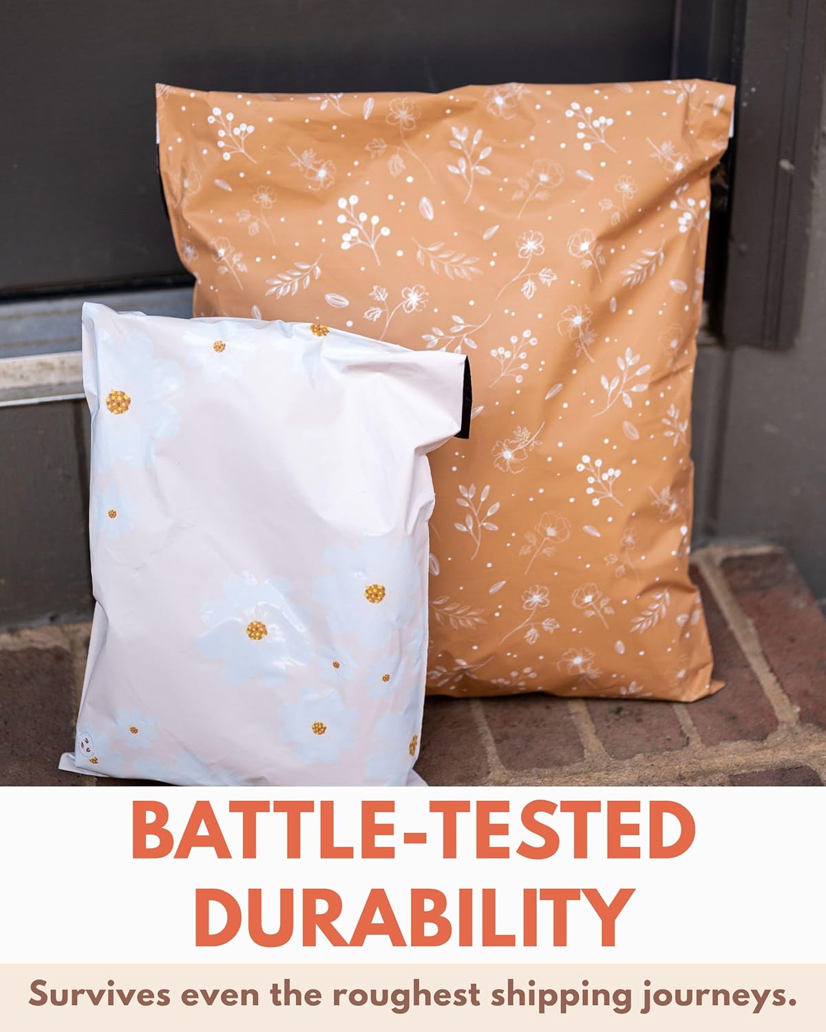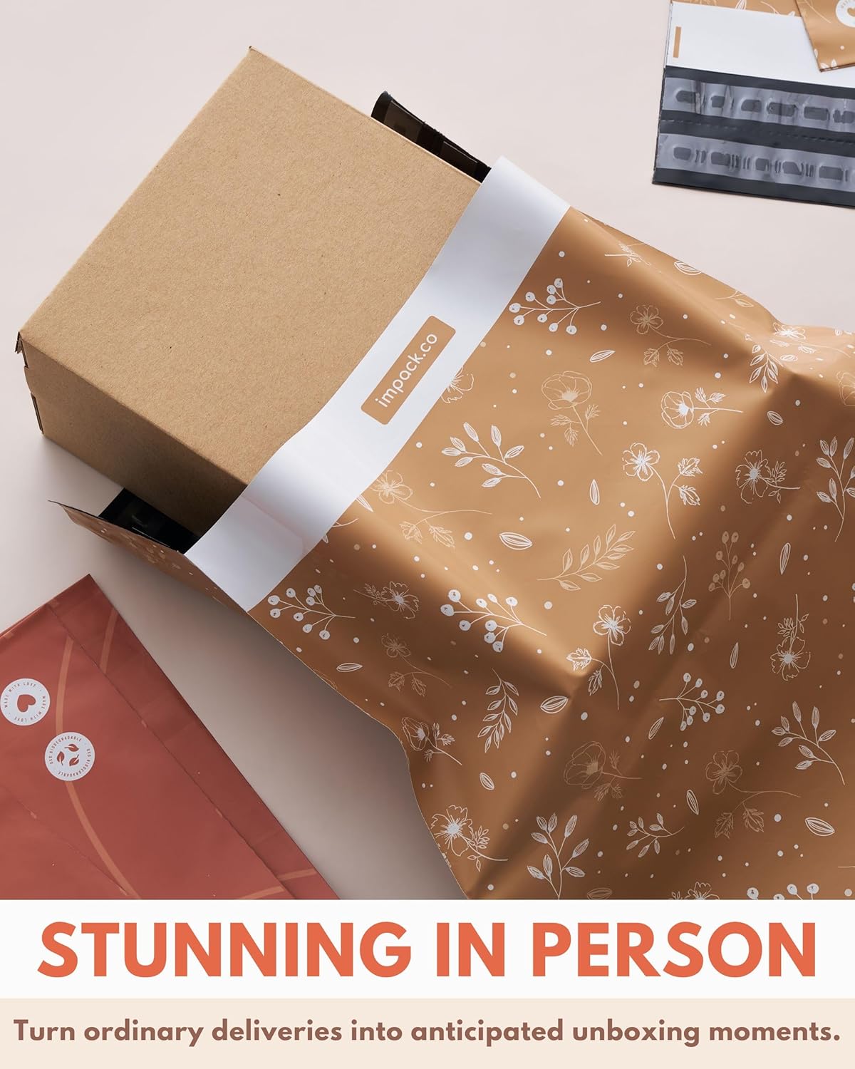Poly Mailers 14.5x19-25 Pack Biodegradable Shipping Bags for Clothes and Large Items - Impack Self-Seal Waterproof Thick Mailing Envelope for Accessories & Clothing - Floral Chestnut