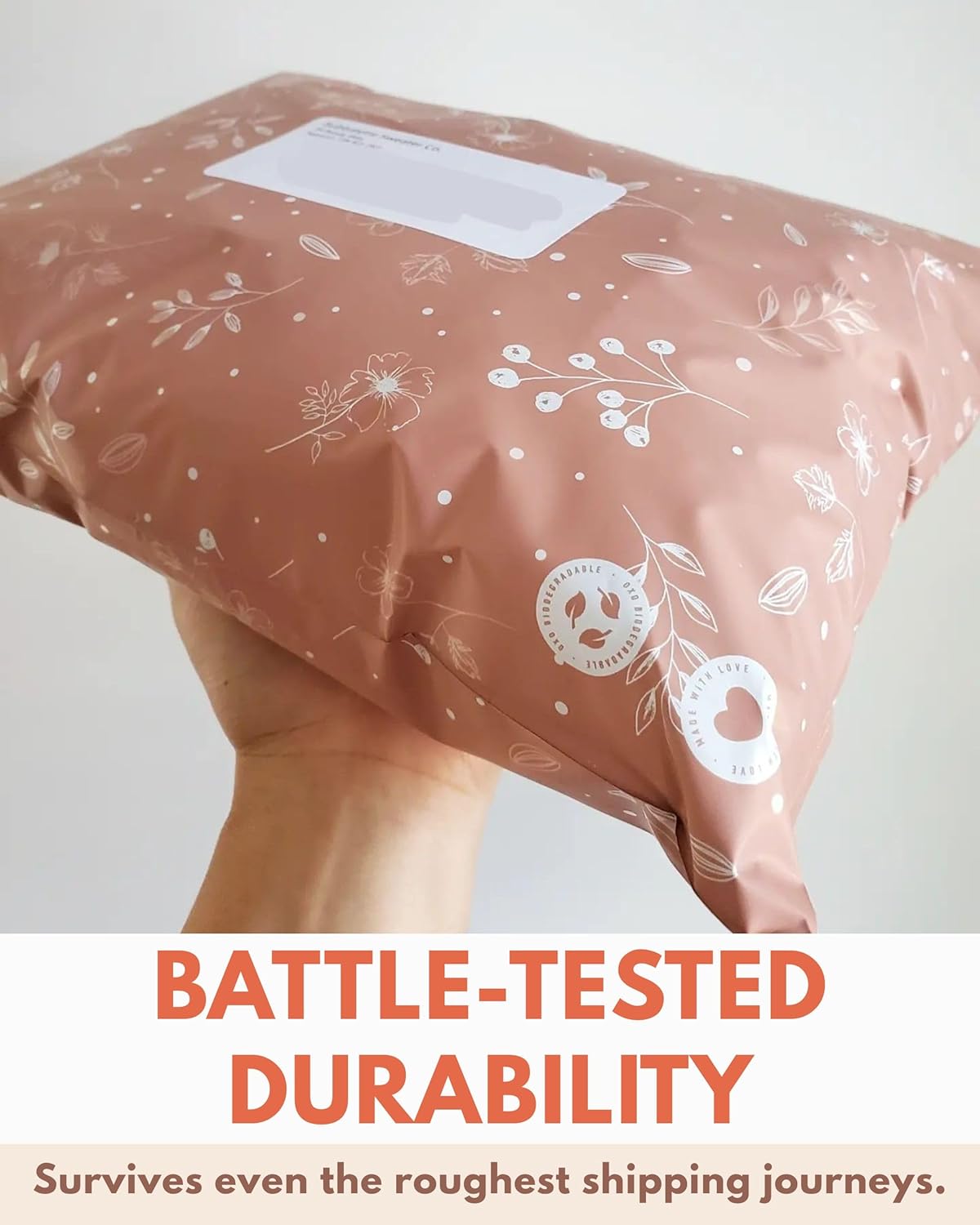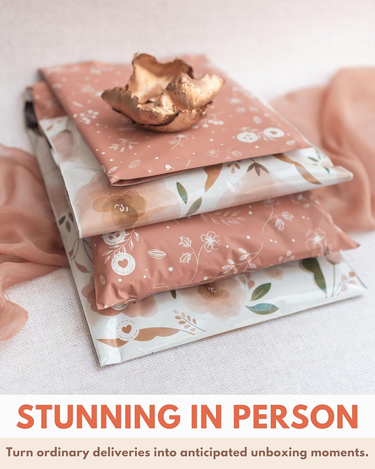 Poly Mailers 10x13-25 Pack Biodegradable Shipping Bags for Clothes - Impack Self-Seal Waterproof Thick Mailing Envelope for Accessories & Clothing - Floral Rosy Brown