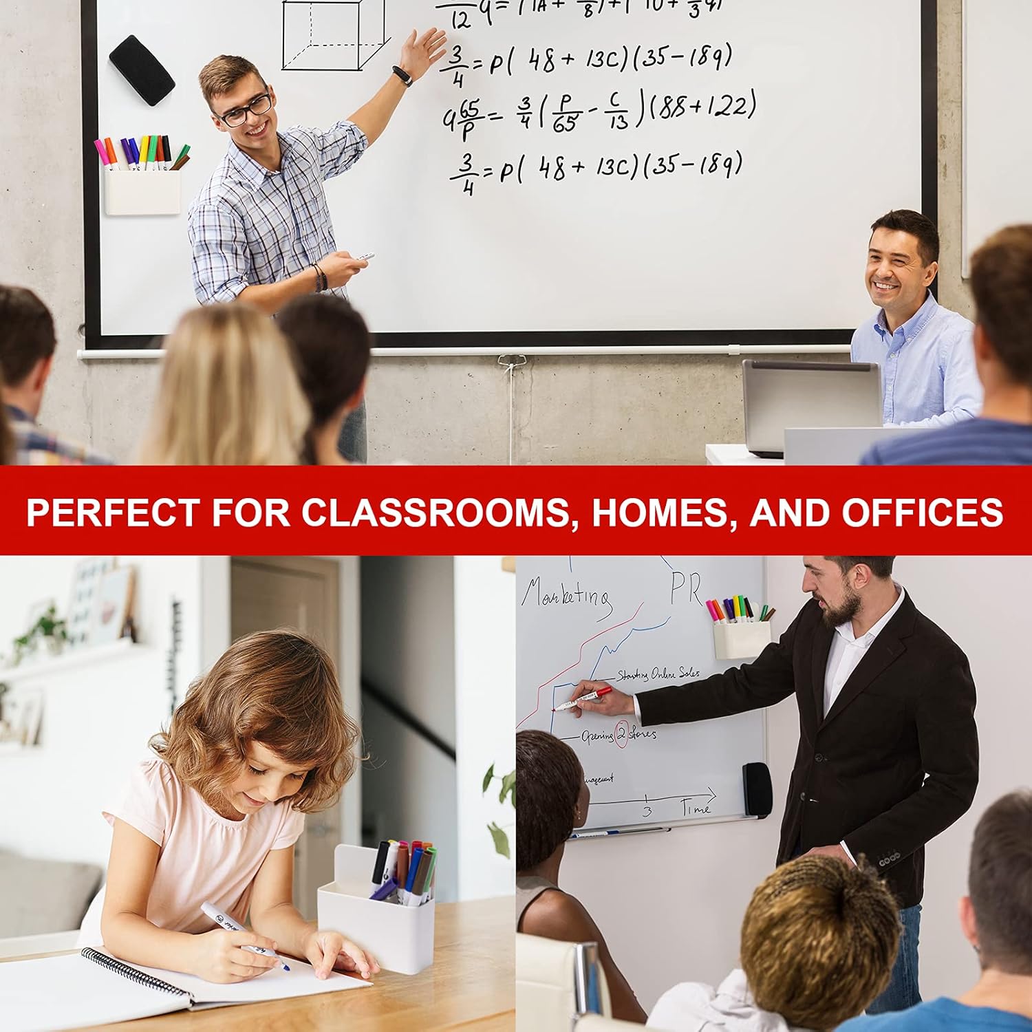 - ✅【Wide Applications】The package comes with a complete set including 12 pcs whiteboard markers in 12 colors, 1 pc whiteboard eraser and 1 pc plastic holder. Utility set designed to be compact and lightweight, which is suitable for office, classroom and home use. With the magnetic feature, this whiteboard dry-erase set can be ideally applied to whiteboard surface, glass and plastic without porous. The perfect organizer fits into any office décor while elegantly ending the hassle of chores.
