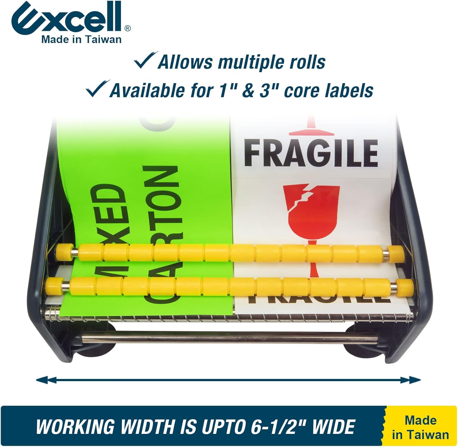 - WHAT YOU GET - Includes one Excell Lightweight Table Label Dispenser (6.5" wide, 1" / 3" core).