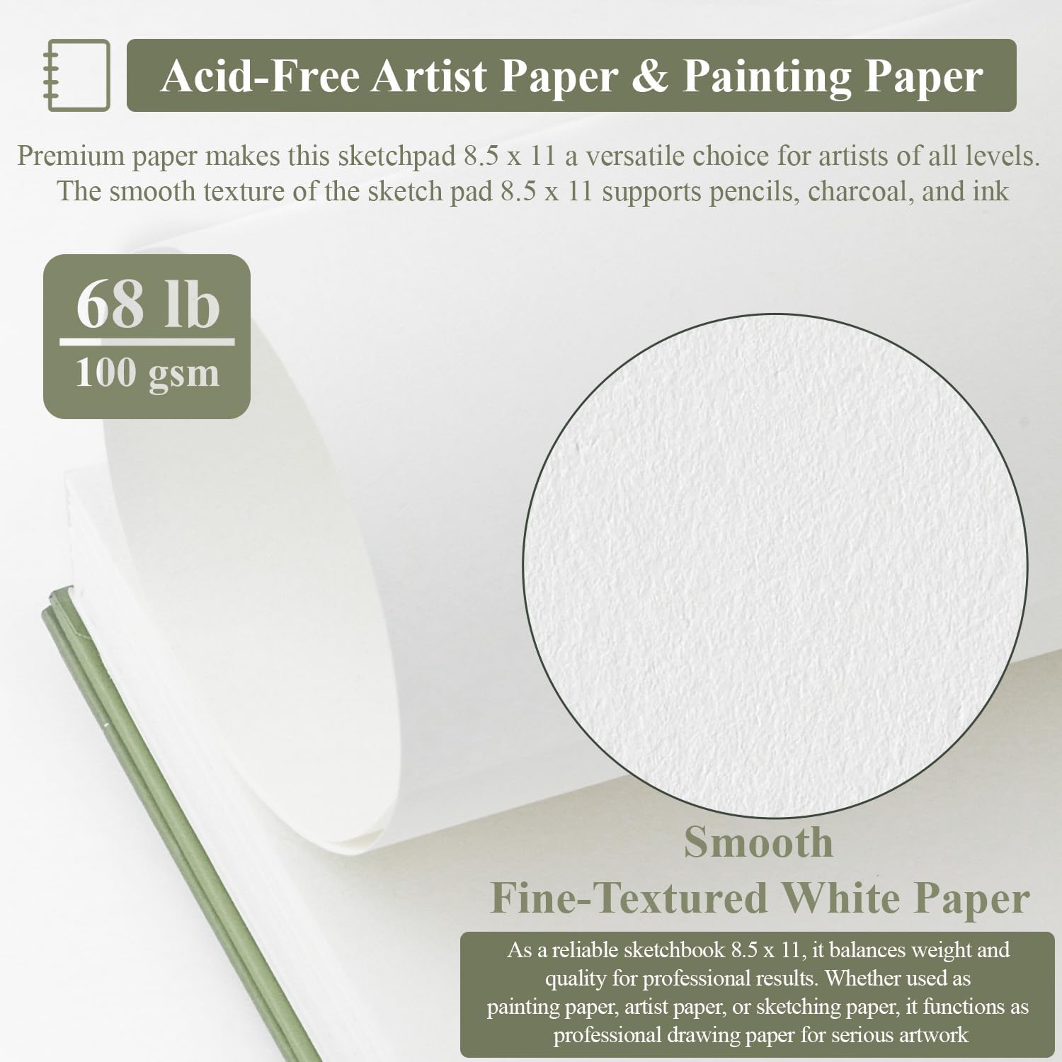 - 68 LB/100 GSM ACID-FREE SKETCH BOOK β SuFly 8.5x11spiral bound sketchbook consist of 200 sheets of high-quality acid-free and PH neutral drawing paper with 100 gsm thickness, which is sturdy and can withstand multiple erasures while maintaining its original roughness to allow dry media to grip to the spiral sketchbook 8.5x11. Whatβs more, the special ACID-FREE technology of 8.5x11 sketchbook prevents yellowness from occurring to your drawings, making your creation long-lasting on the sketch book.