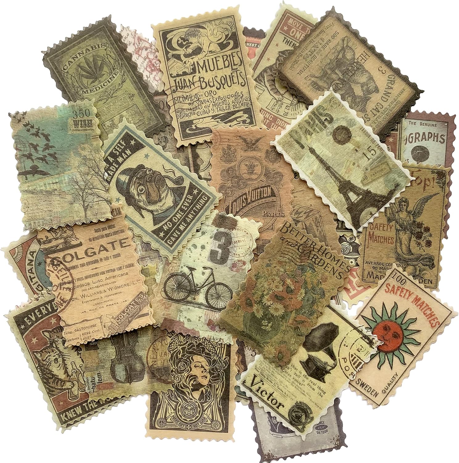 - 60 assorted vintage stamp stickers with 30 unique designs for scrapbooking and crafts