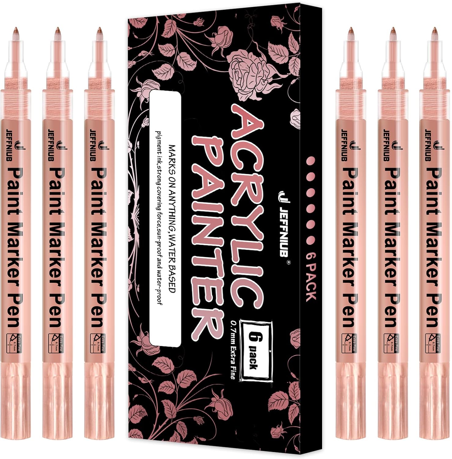 Acrylic Paint Pens Gold,Silver,Rose Gold,Paint Markers for Rocks Painting, Wood, Fabric, Glass,Ceramic,Canvas. Scrapbooking,Card Making,DIY Craft Supplies Metallic Acrylic Marker Set (Rose gold)