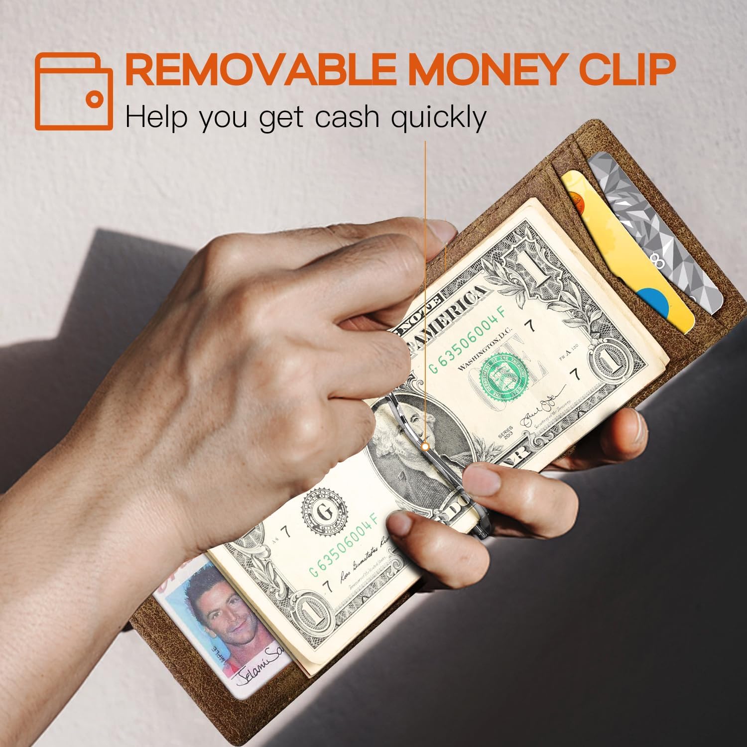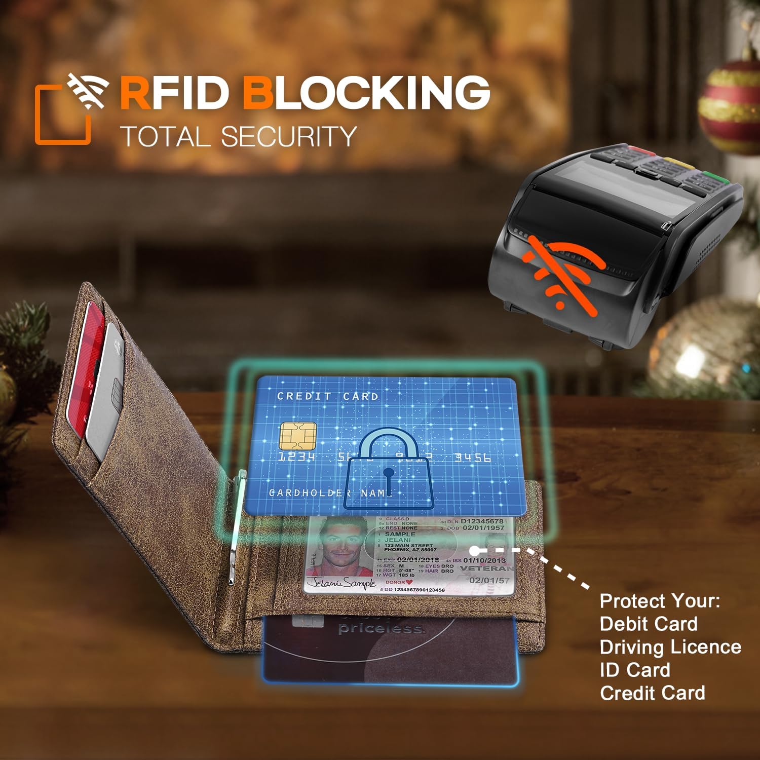 Slim Wallet for Men Genuine Leather RFID Blocking Bifold Minimalist Front Pocket Mens Wallet with Money Clip Thin Gift Box