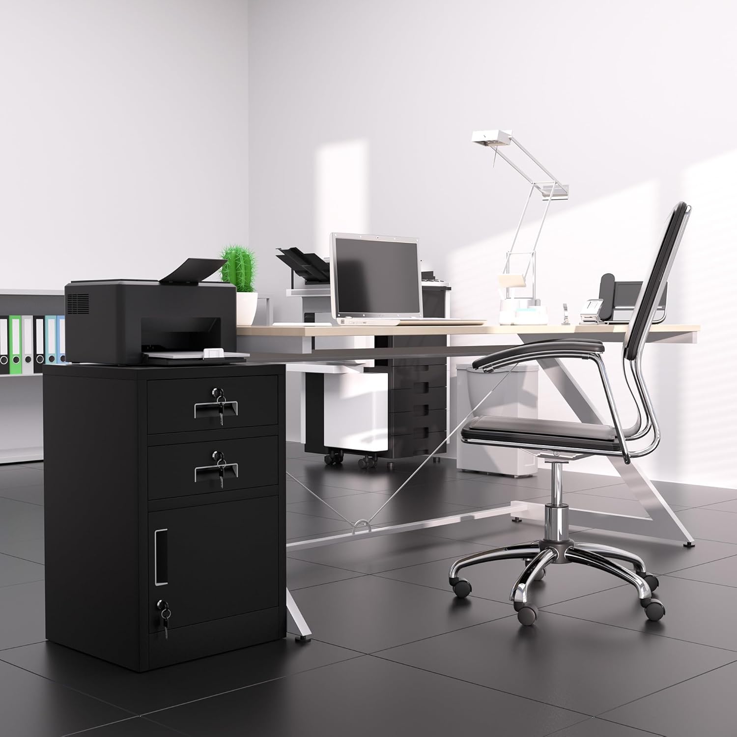 Metal Storage Cabinet with Locking Door and 2 Lockable Drawers for Home Office Bedroom Living Room (Black)