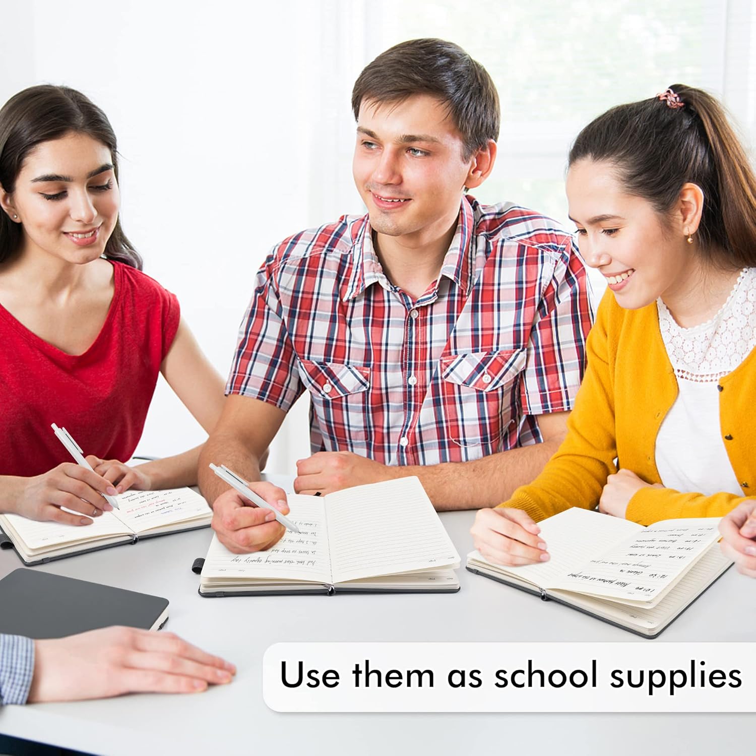 - There are 24 Black Retractable Pens in the box. You can use it as soon as you receive it. These pens are perfect to be put in the pen holder of the classic ruled notebook. Large tube has the capacity of restoring more ink, which makes them long lasting. Quick drying can avoid smearing and smudge.