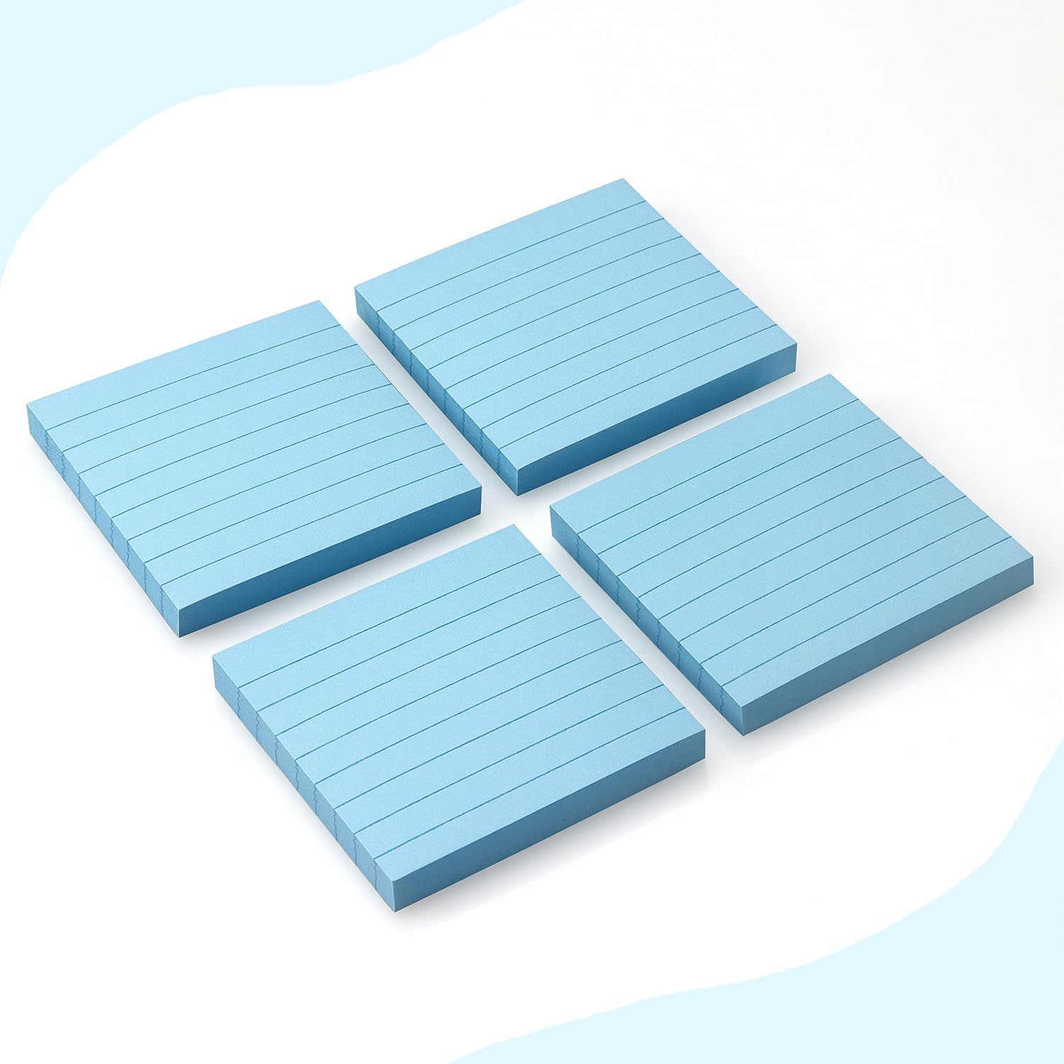 Lined Sticky Notes 3x3 Sticky Notes with Lines Self-Stick Notes Bright Color 4 Pads 90 Sheets/Pad (Light Blue)