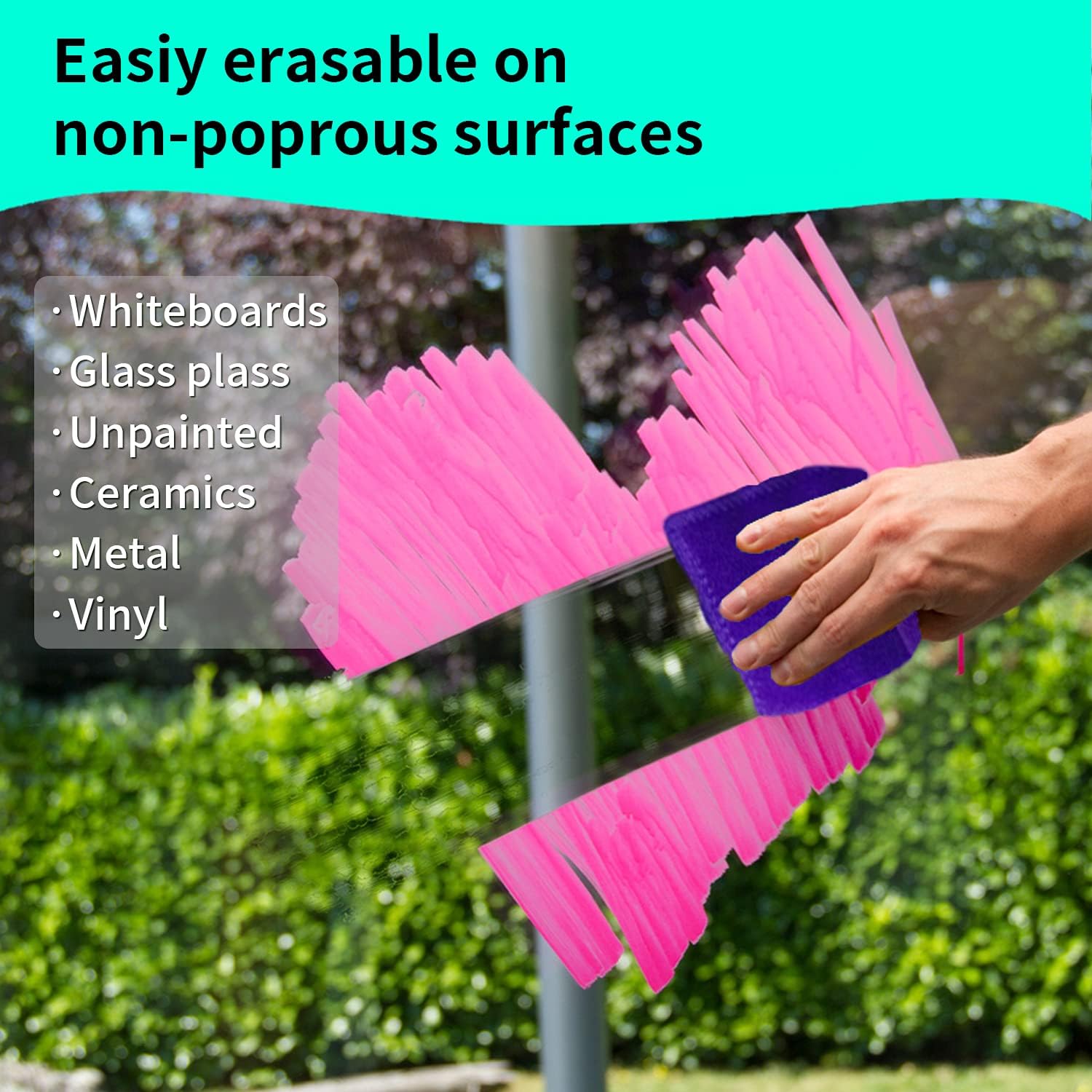 - Wet Erase Only for Non-Porous Surfaces: Window markers for glass are easy to erase with no color residue. Before use, apply chalk primer to a small, hidden area to ensure smooth writing and easy erasing. Designed for washable glass, our car window markers feature water-based, washable ink and clean up effortlessly with a damp cloth