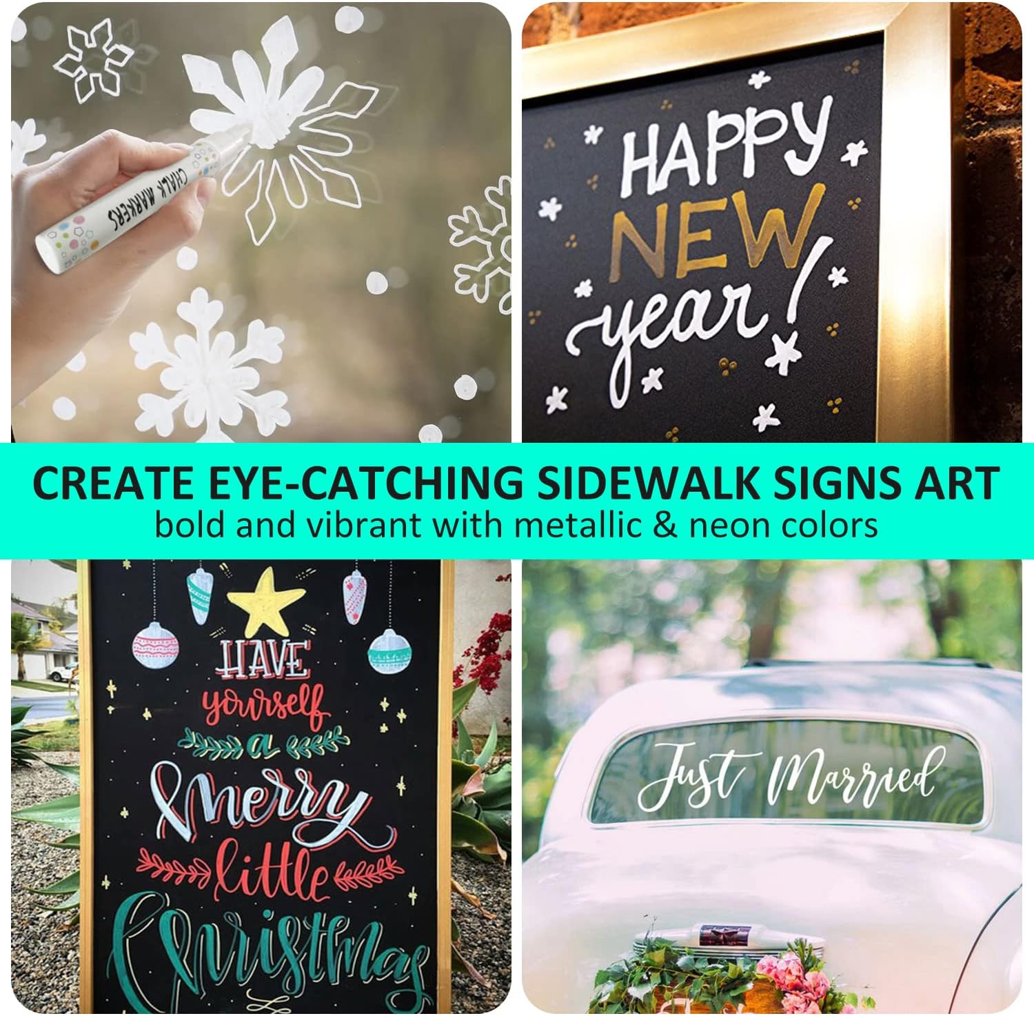 - Eleven Colors in a 12-Pack: This set includes a vibrant selection of neon colors—2 white, 1 red, 1 orange, 1 yellow, 1 green, 1 blue, 1 purple, and 1 pink—along with 3 metallic shades: gold, silver, and rose gold. These car window paint markers washable work great on car windows, glass, mirrors, chalkboards, craft paper, hands, chalk lettering, and stencils