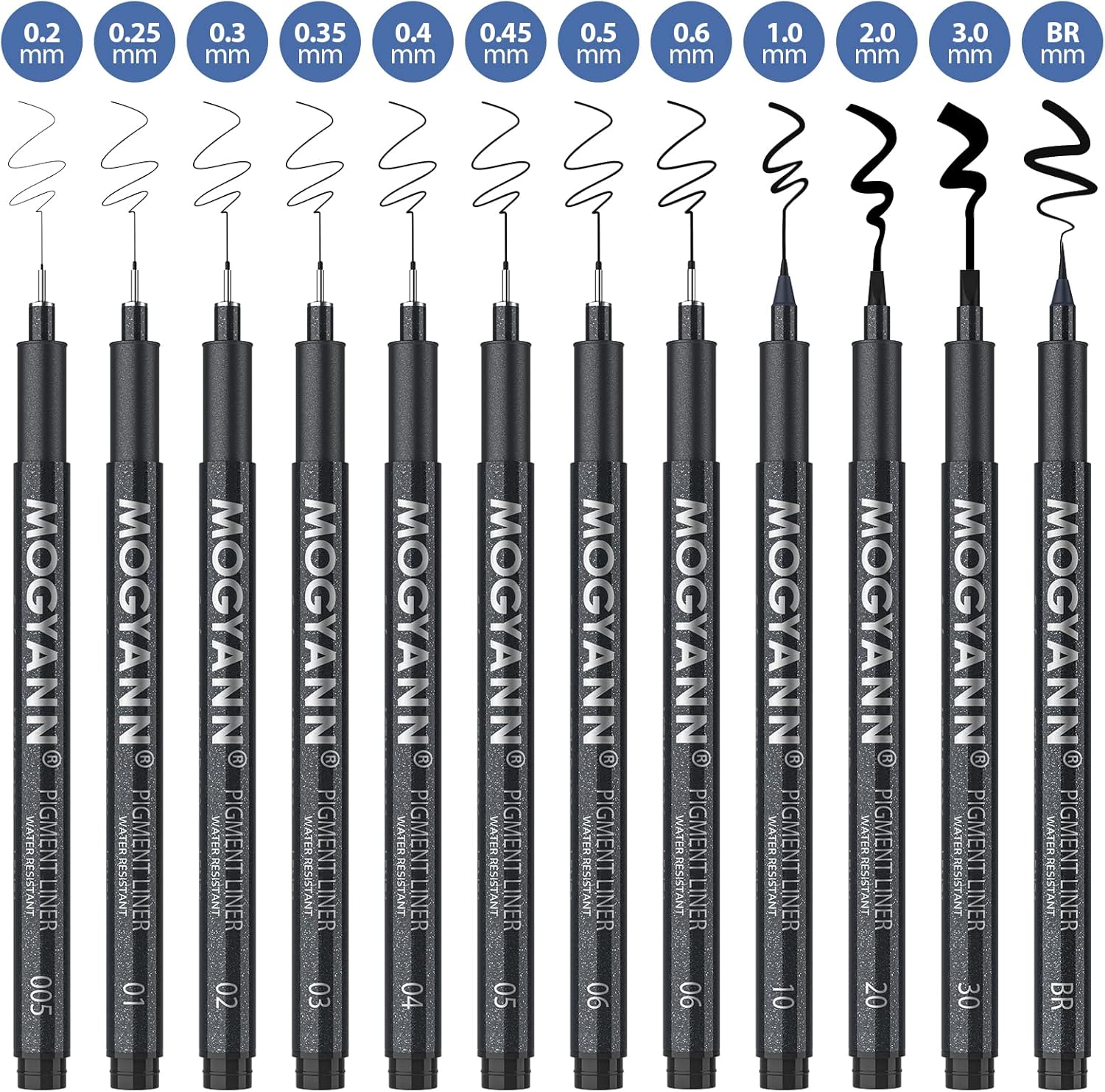 Mogyann Drawing Pens Black Art Pens for Drawing 12 Size Waterproof Ink Pens for Artists Sketching, Manga, Writing