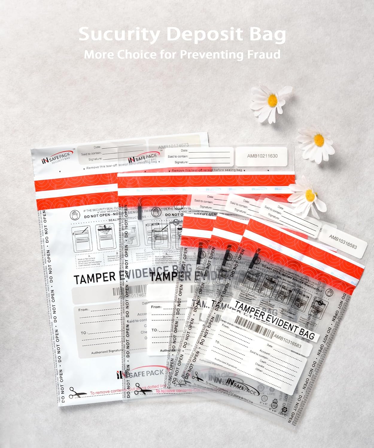 - 【High Security】:Every tamper evident bag with unique Sequential Numbers can keep your money safe, and with barcodes is easy to track.