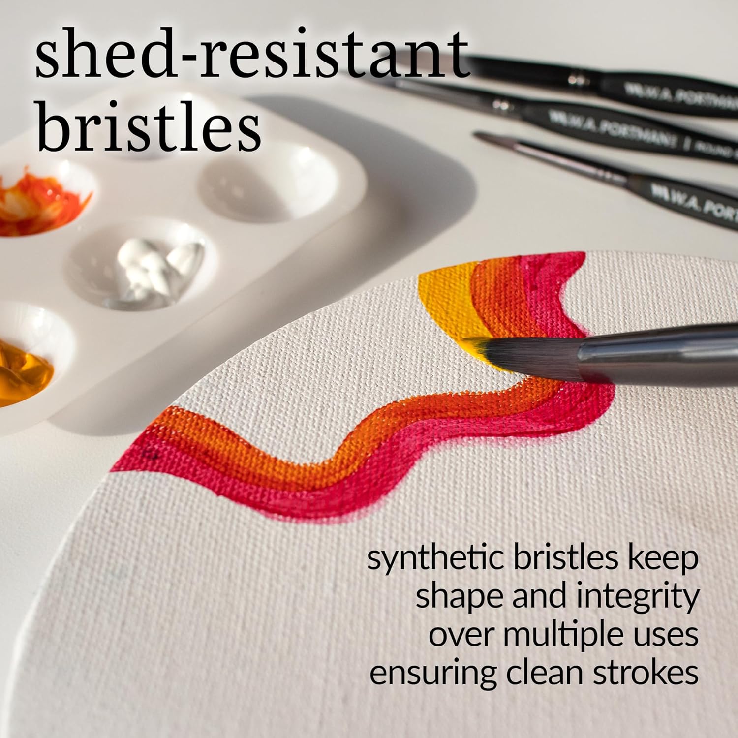 - Excellent Paint & Water Retention - W.A. Portman’s round art paintbrush sets (sizes 4, 8, 12, & 16) feature silky Taklon hair for excellent water retention. These painting brushes for acrylic paint include 4 paint brushes for canvas painting that can be used as paint brushes for watercolor painting, painting brushes for acrylic paint, and gouache paint brushes. Ideal for fine details and broad strokes, making them a versatile choice for any project