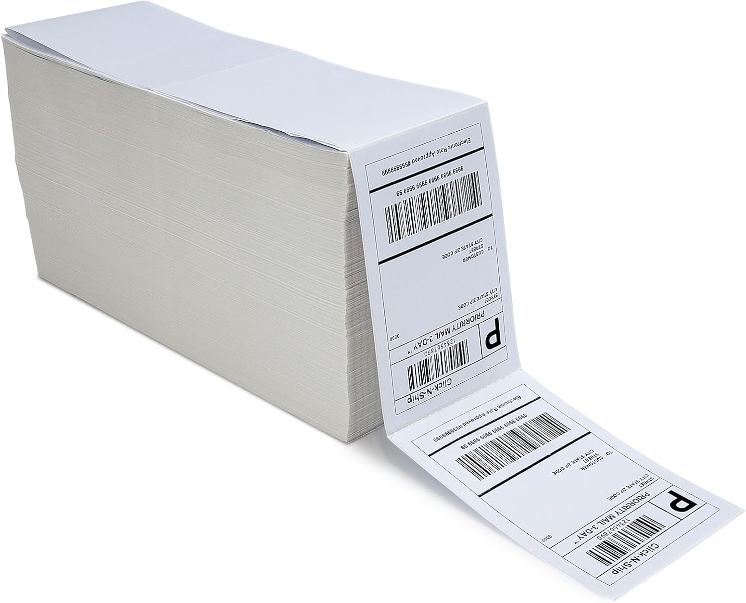 - 2500 labels per stack, total 1 stack = 2,500 labels Strong adhesive to corrugated boxes and envelopes