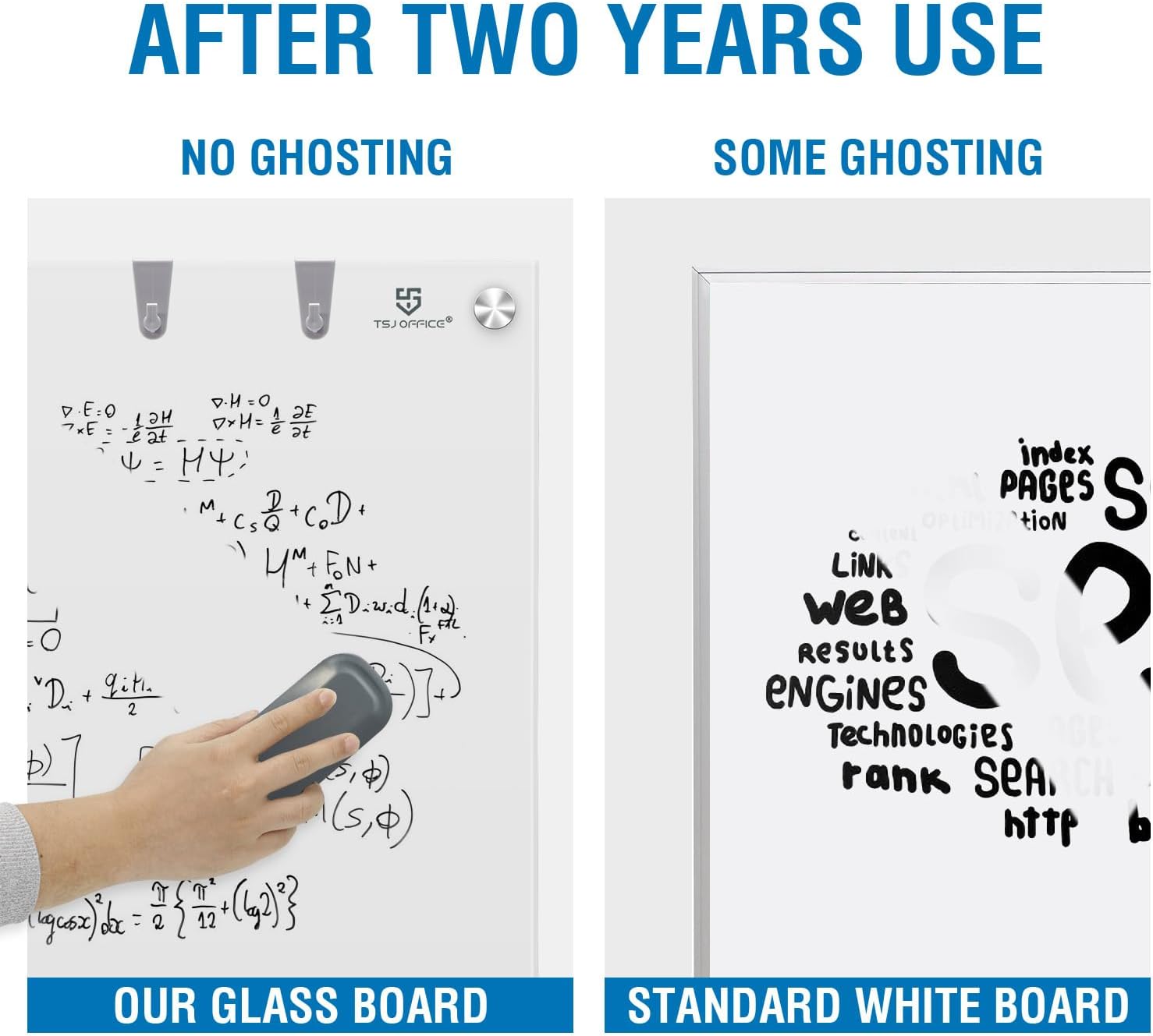 TSJ OFFICE Glass Dry-Erase Board - 36 x 24 Inches Brilliance White Magnetic Glass Whiteboard, Wall Mounted Large Frameless White Board for School, Home & Office