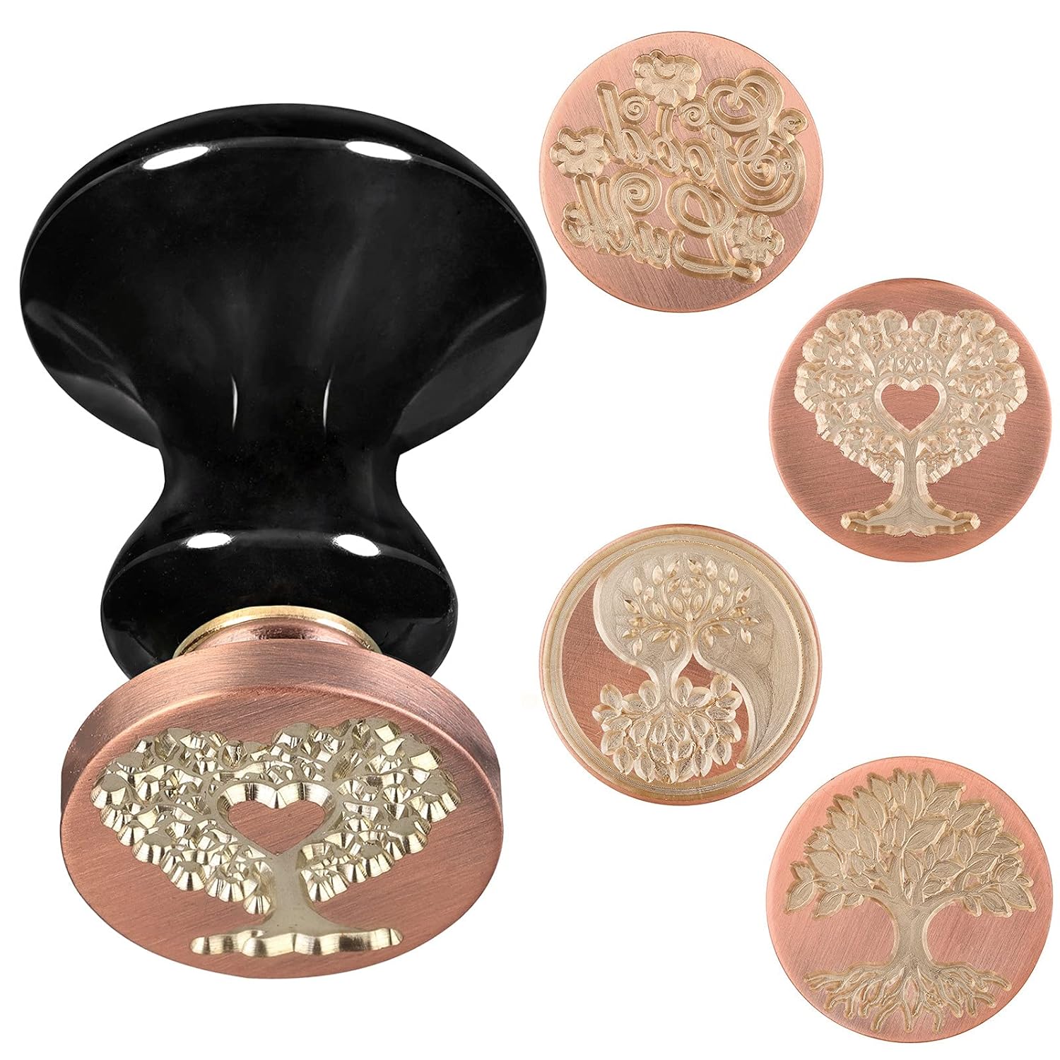 rockcloud Wax Seal Stamp Set, 4 Pieces Sealing Wax Stamps Copper Seals with 1 Black Obsidian Seal Handle for Cards Envelopes Invitation Decoration, Tree of Life