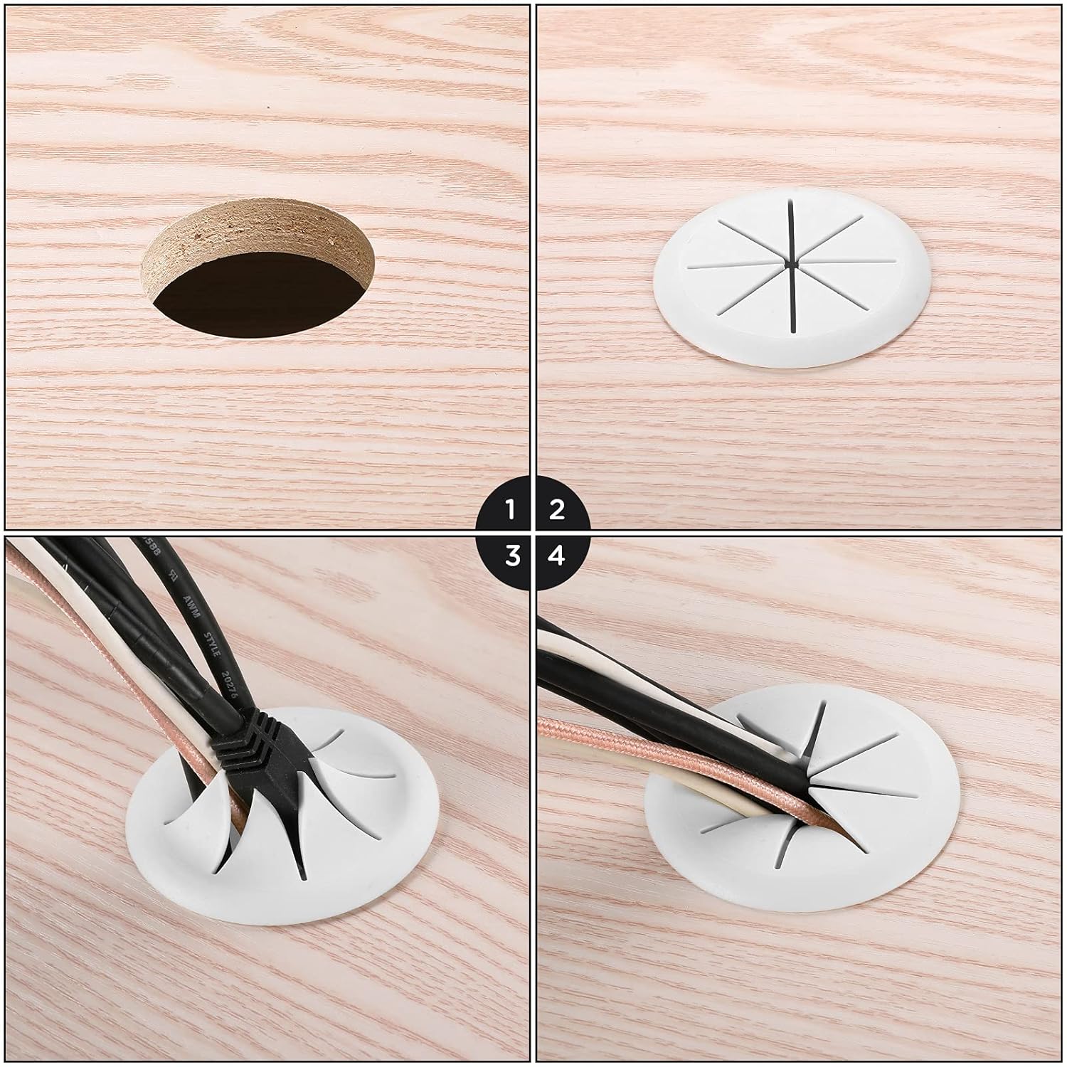HYCC 5 Pack 2 Inch Flexible Desk Grommet,Organize Wires and Cables on Office Equipment, Computer Components, Entertainment Systems Effectively - Color: White