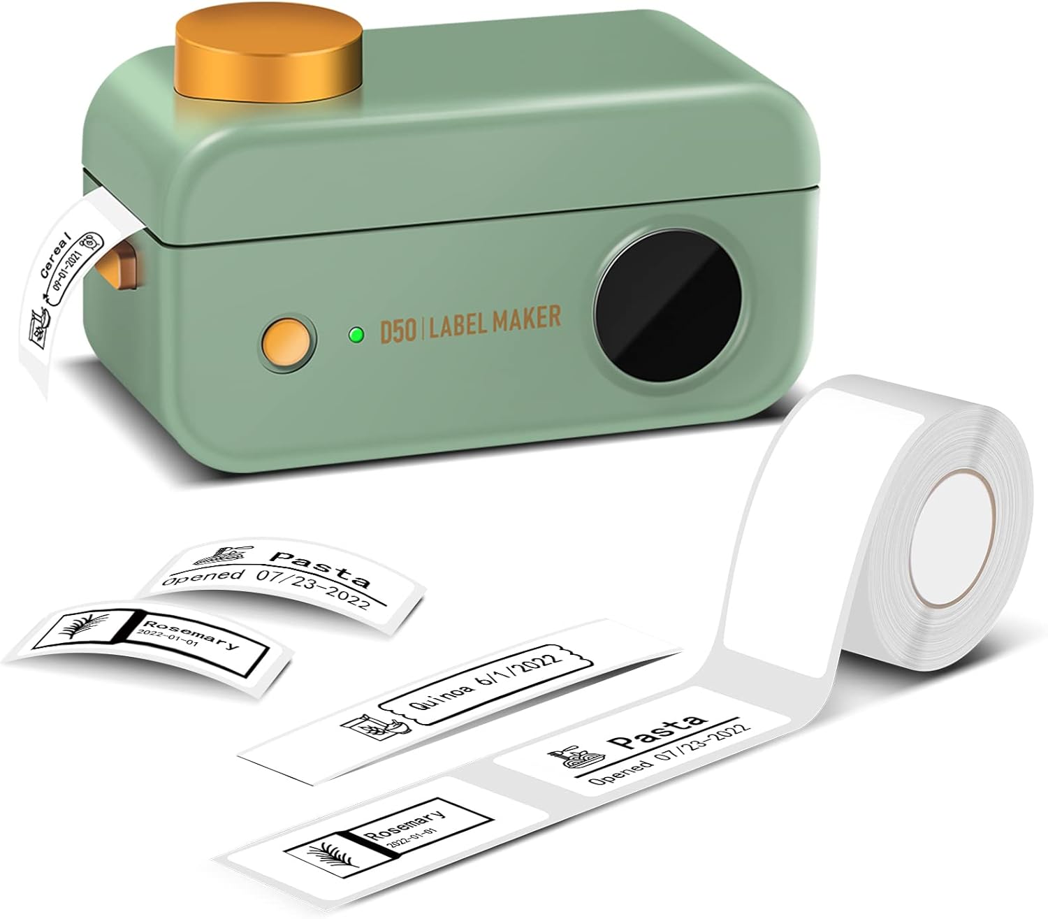 - Innovative Label Maker - 2023 New Design Phomemo D50 handheld label printer with a cutter button, builed-in blade design would not hurt your hand, D50 label machine can identify label sizes and pattern automatically, print more easily and fast