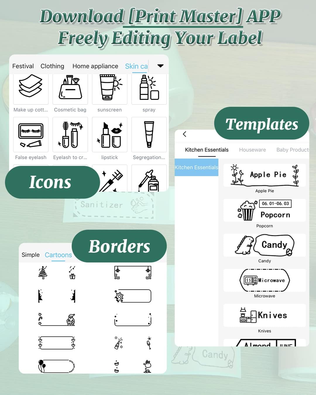 - Smart APP Easy to Use - [Print Master] APP has 300+ Icons, 50+ templates and 20 fonts for free. Support 11 languages. Once you put in the paper roll, the app can automatically recognize the label. Customize your own label freely
