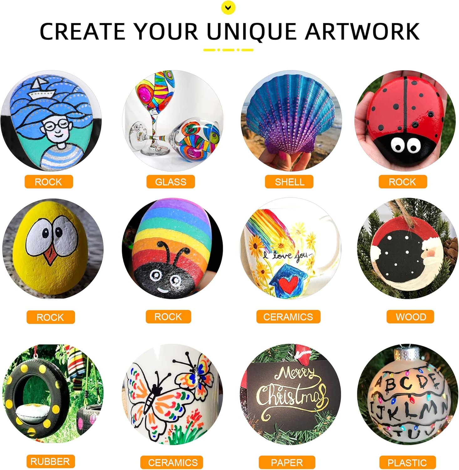 - Durable and Waterproof: Protect your creations from the elements with our waterproof markers. Once dry, they resist water, ensuring your artwork remains vibrant and intact, even when exposed to rain or moisture. This feature is essential for outdoor projects like rock painting.