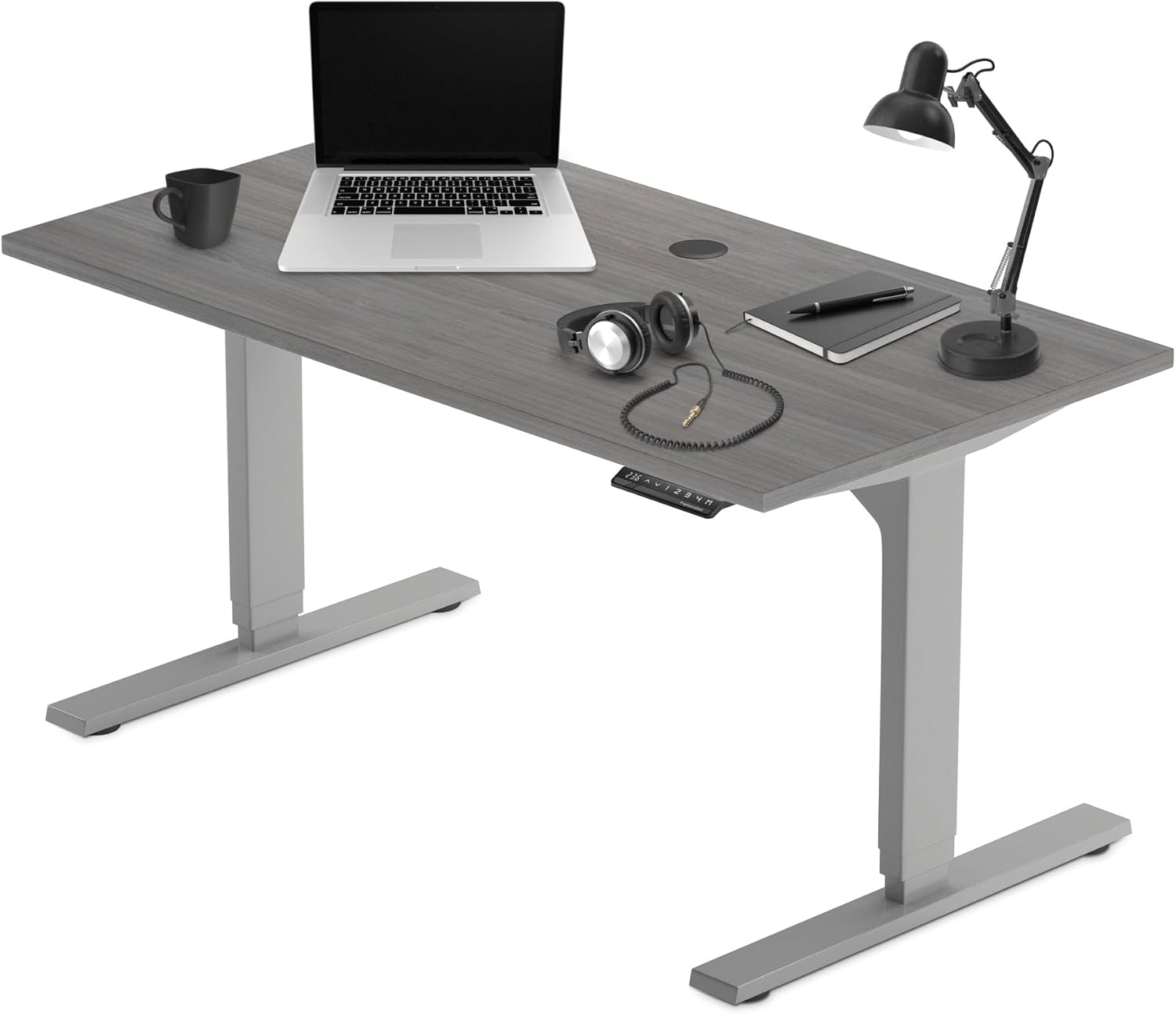 Progressive Desk Stand Up Height Adjustable Electric Standing Desk - 48" x 30" with Dual Motor, 3 Stages Sit Stand Table - Gray Oak, Gray Frame