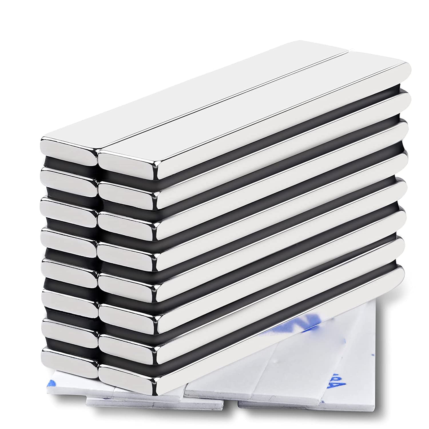 LOVIMAG Strong Neodymium Bar Magnets with Double-Sided Adhesive, Rare Earth Metal Neodymium Magnet for Fridge, Scientific, Shower Door, Office Etc, 60 x 10 x 3 mm, Pack of 16
